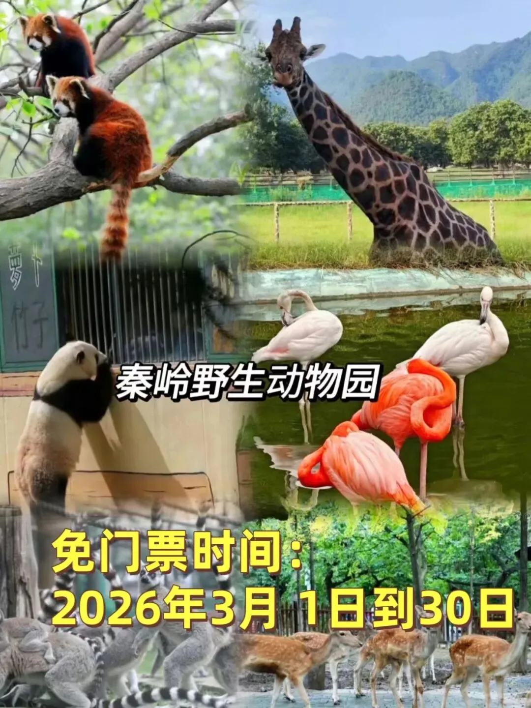 西安秦岭野生动物园,是集野生动物移地保护、科普教育旅游观光、休闲度假于一体的国家4A级旅游景区,展养着秦岭四宝“大熊猫、羚牛、金丝猴、朱鹮”等秦岭珍稀动物、野生动物200余种、6000余头 。