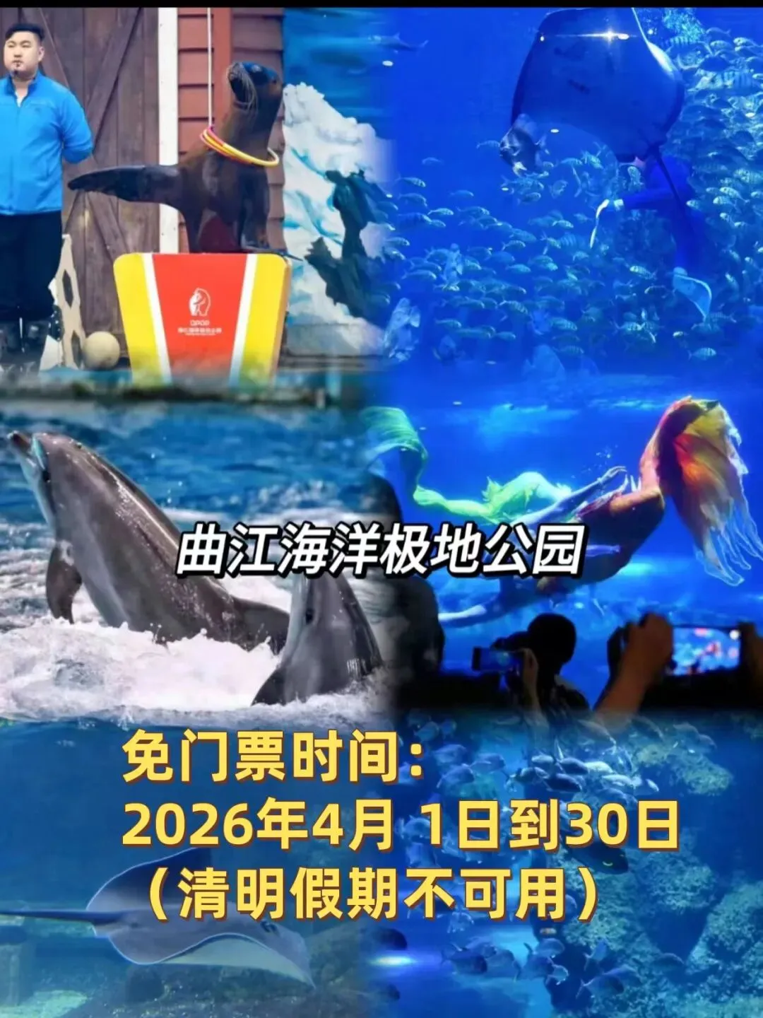 曲江海洋极地公园是一家海洋极地文化主题公园,主要由海洋馆、极地馆构成,是经营海洋动物展览表演、野生动物驯养等项目的水族行业景区,是集海洋极地文化体验、休闲娱乐、科普教育、广场文化等诸多功能于一体的海洋极地文化展示基地。