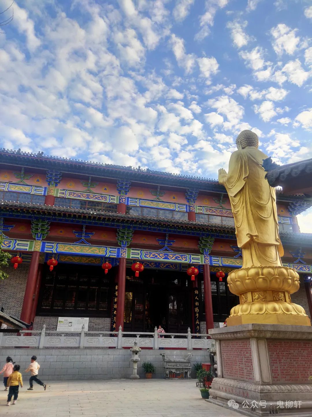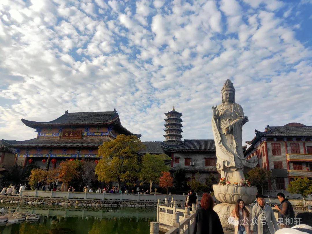 进得山门,如入仙境,但见宝塔入云,古树参天;翠竹垂柳,奇花异草;流水潺潺,鱼跃雁鸣;百米长廊,青砖铺地;假山地宫,群雕巧布;红柱青瓦,飞檐翘角;晨钟暮鼓,风铃悠扬;宝鼎香炉,香烟缭绕;佛像庄严,观音慈祥;令人目不暇接,心旷神怡。