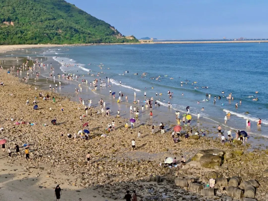石滩赶海拾趣,人潮逐浪伴山听海