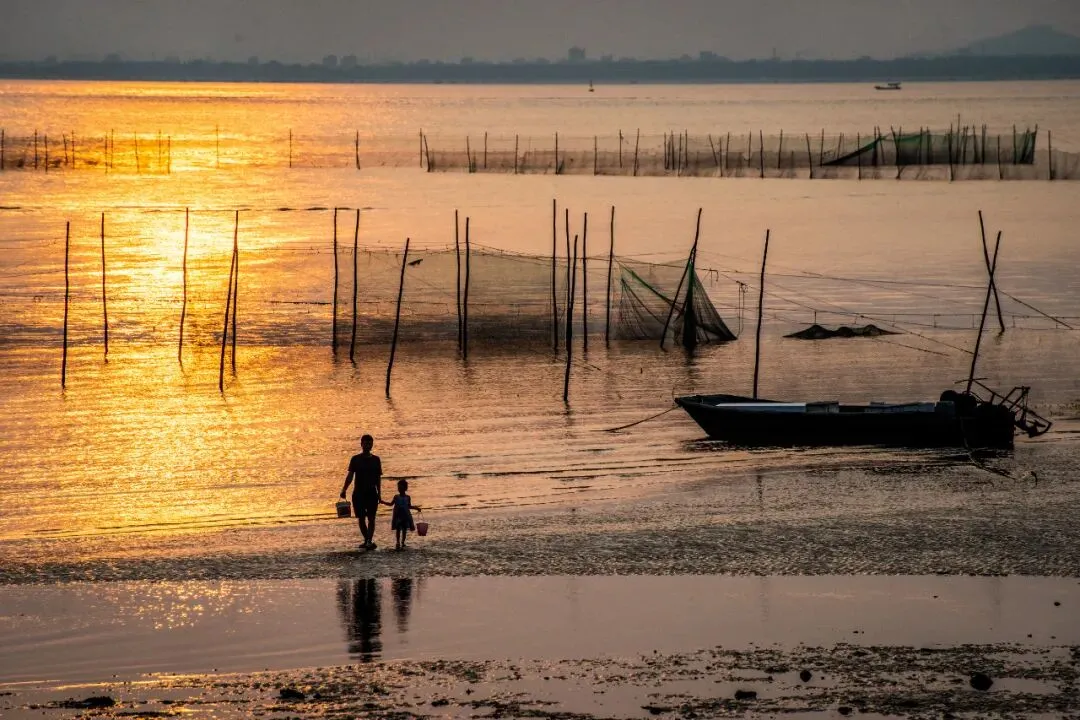 渔民伴日落满载而归