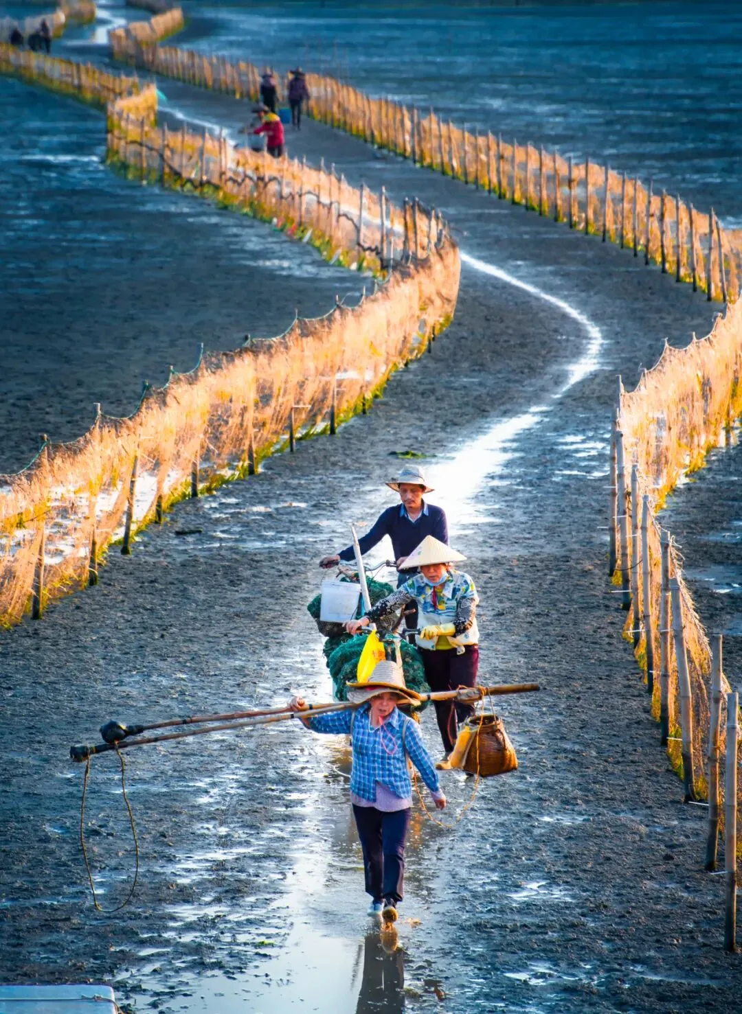 白蕉滩涂,赶海人踏浪归来