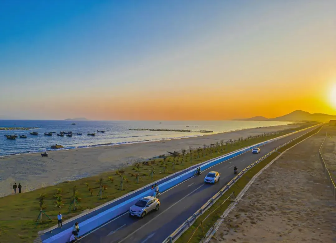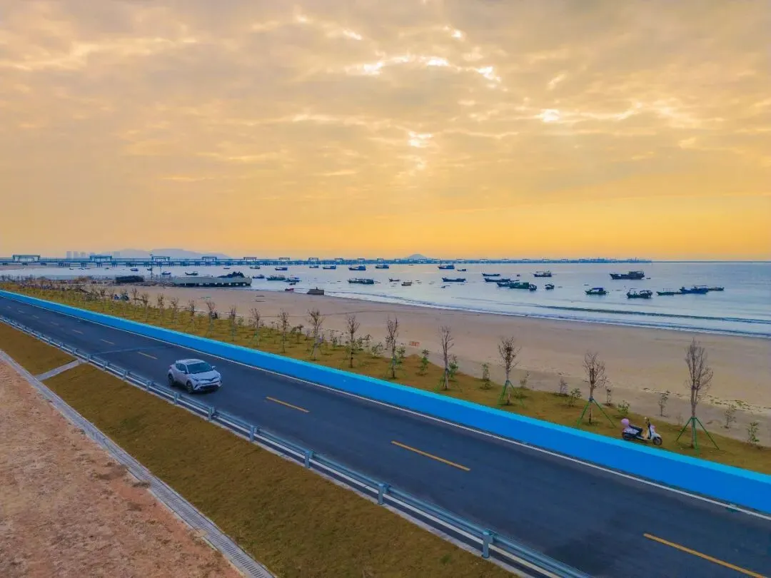 电城镇拥有36公里海岸线,新建海堤沿湾舒展,海后、沙尾村一带,是绝美夕阳观景地。