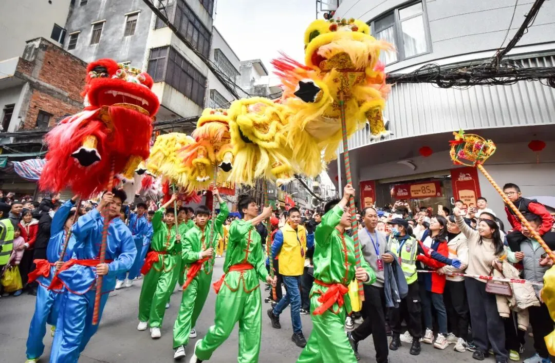电城“四瑞”——龙舞、凤鸡舞、鳌鱼舞、高脚狮舞,起源于明代成化年间,已有五百多年历史。每逢新春,四条古街巡游盛景如期而至:西街舞龙、东街舞凤、南街舞鳌鱼、北街舞高脚狮,以非遗之韵祈福迎新,祈愿风调雨顺、人寿年丰。
