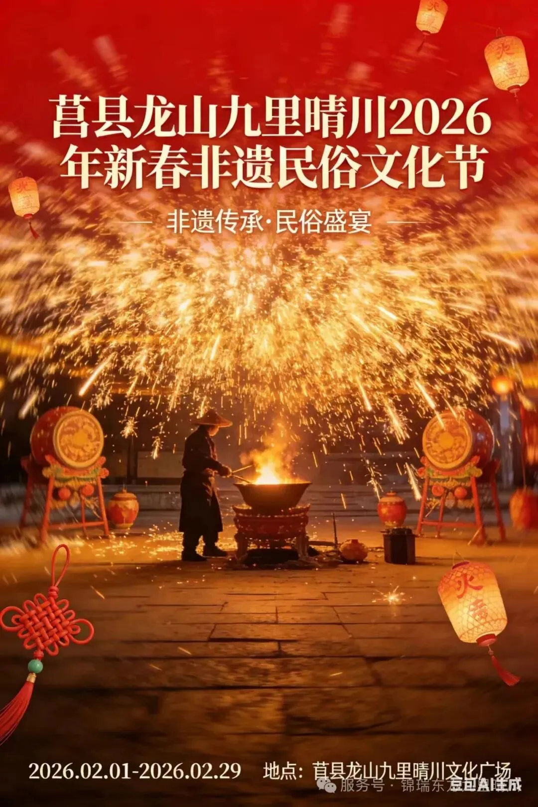 莒县这个景区“批发”快乐!祥蛇辞旧岁,瑞马迎新春! 2026年莒县龙山镇九里晴川迎新年非遗民俗文化节,正月初一至十五火热启幕,全天9:00-21:30畅玩不打烊,非遗盛宴、璀璨烟花、特色美食、趣味游乐一站式打卡,承包你的新春欢乐!