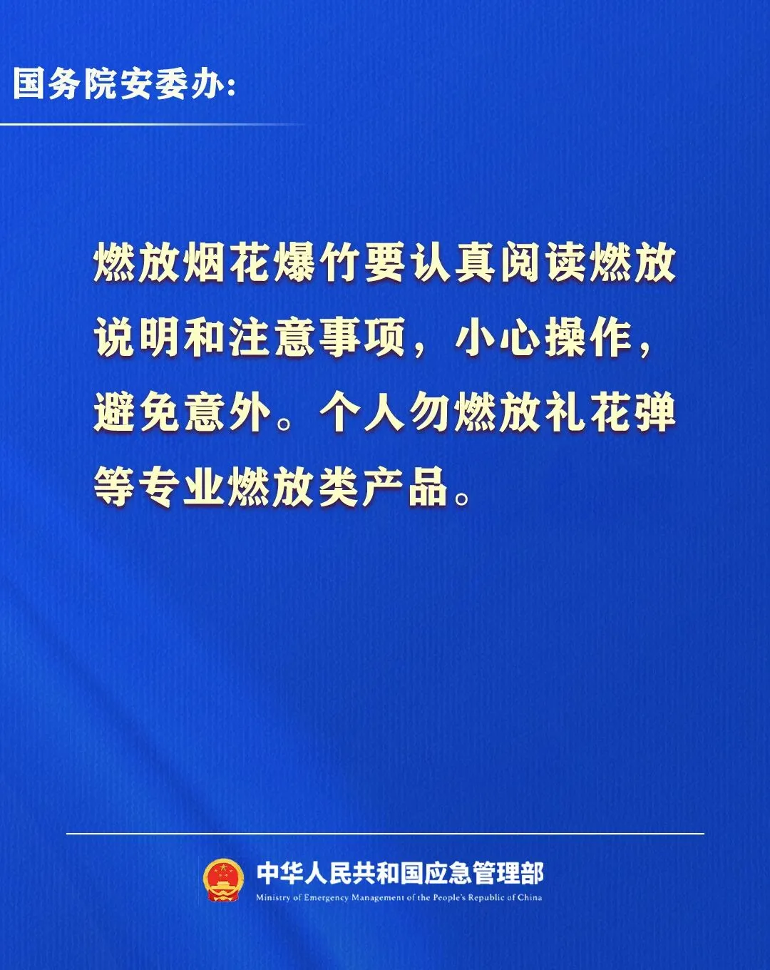 ●倡导文明祭祀,自觉遵守烟花爆竹燃放规定,燃放时要与高层建筑、自建房、堆垛等可燃物体保持安全距离。进入古建筑、山林景区等区域时,应自觉遵守防火规定,严禁吸烟或携带@使用任何火种。