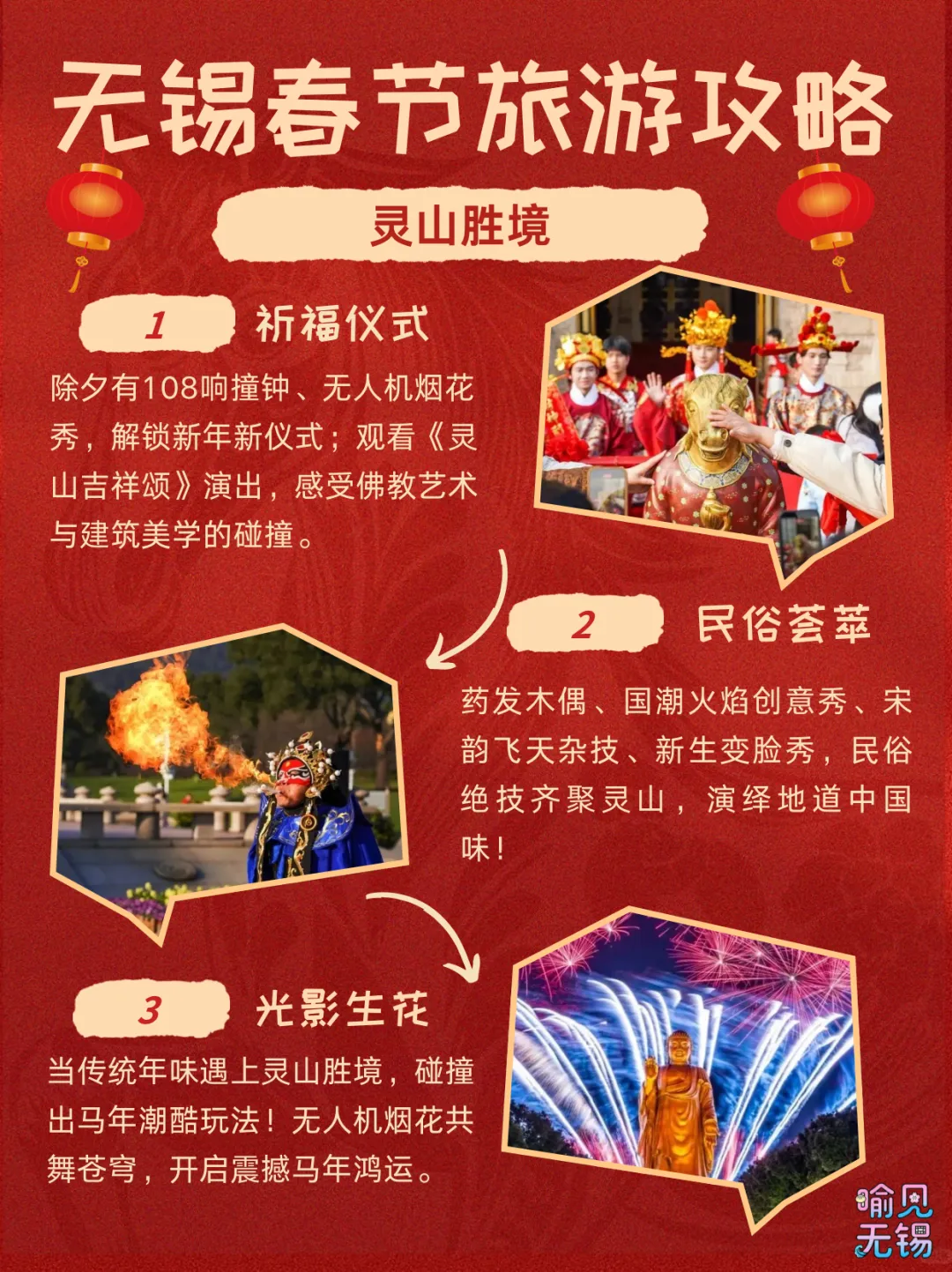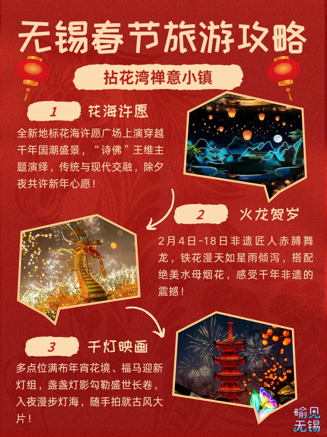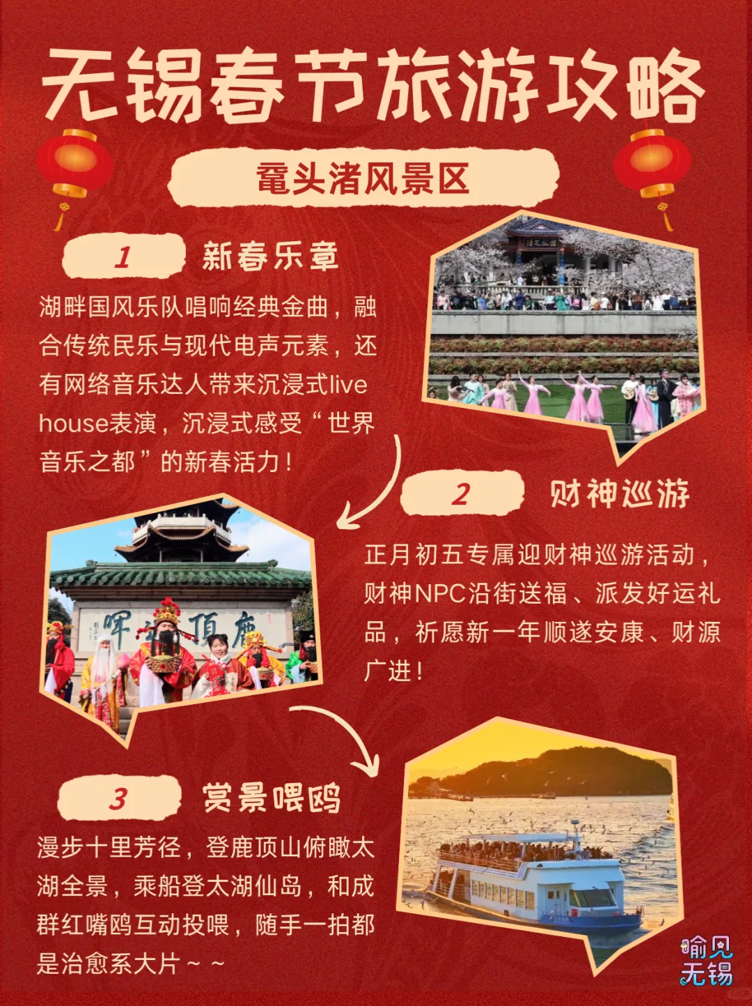 您现在的位置是:首页 > 旅游攻略 > 正文 旅游攻略 这份无锡春节旅游攻略请查收 admin2026年02月15日 16:13:40旅游攻略10 这份无锡春节旅游攻略请查收编辑:徐静雅审核:胡晞渟点分享点收藏点在看点点赞 转载请说明来源于"旅荐网",部分内容转载自网络,如有侵权请联系qlwl@foxmail.com删除 本文地址:https://www.15386.cn/post/108228.html 上一篇 嘻游取经路 探秘玉石林 | 玉石林景区2026年春节活动预告 下一篇 关于崆峒山景区春节除夕景交车延长时间的公告 相关文章 春假清明出行攻略 | 罗田周边踏青好去处,大别山旅游度假区限时优惠合集! 《旅游投诉处理办法》游客视角解读 江苏无锡旅游必去十大景点游玩攻略,2026年3月无锡最接地气,这十个地方才是真江南,推荐收藏游玩 盱眙|十大值得旅游攻略的景点,大力推荐!! #华山旅游攻略 男友做的秦皇岛旅游地图攻略��不绕路路线图 北京房山区旅游攻略十大必去景点推荐,一日游好玩都在! 6-8月最美十大旅游线路,带着全家,走进《国家地理》封面图! 北京朝阳区旅游攻略十大必去景点推荐,一日游好玩都有! 北京东城区旅游攻略十大必去景点推荐,一日游尽享欢乐! 发表评论 取消回复 评论列表 这篇文章还没有收到评论,赶紧来抢沙发吧~
