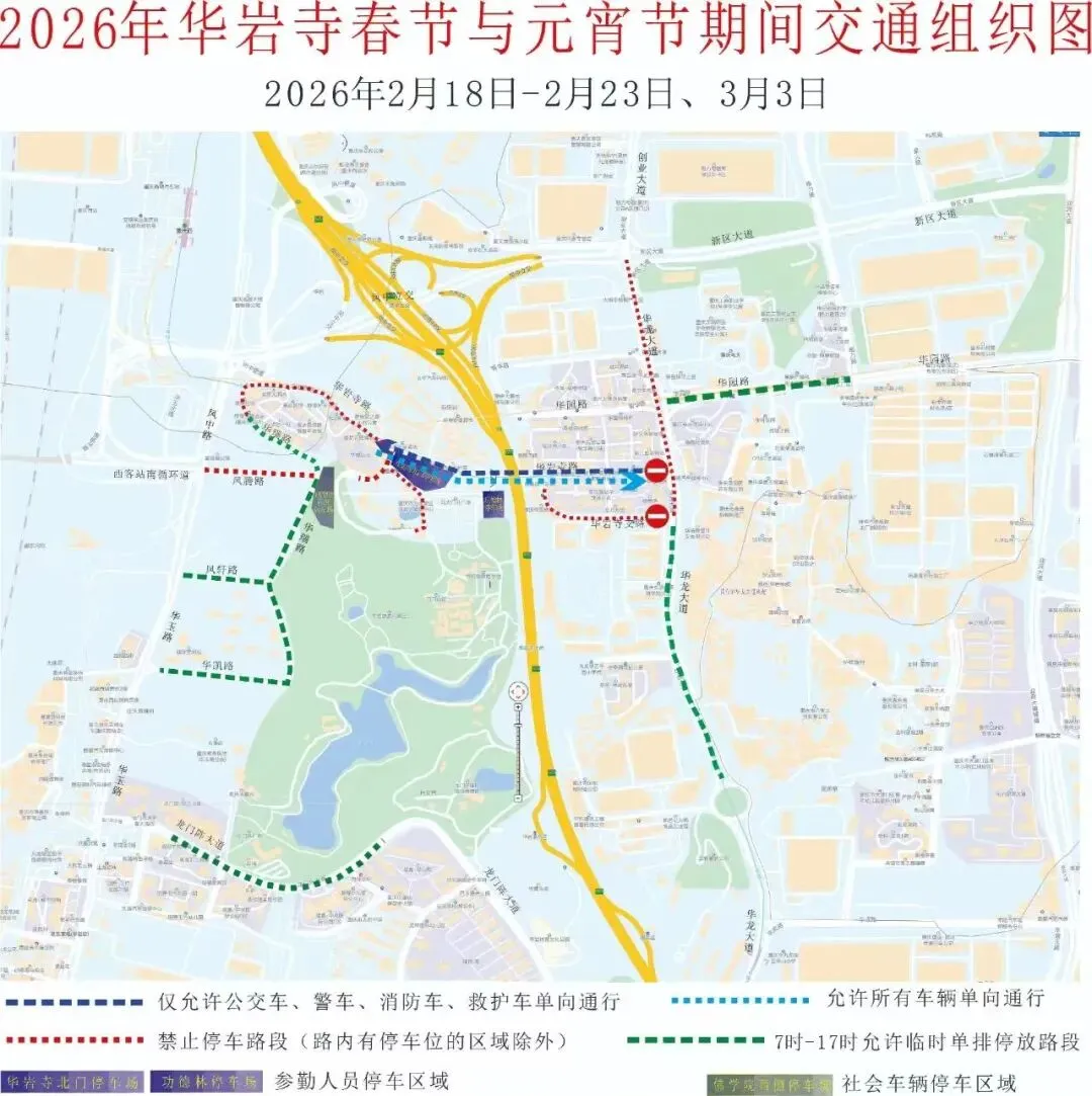 注意!春节与元宵节期间,华岩旅游区及周边道路将有交通管制!