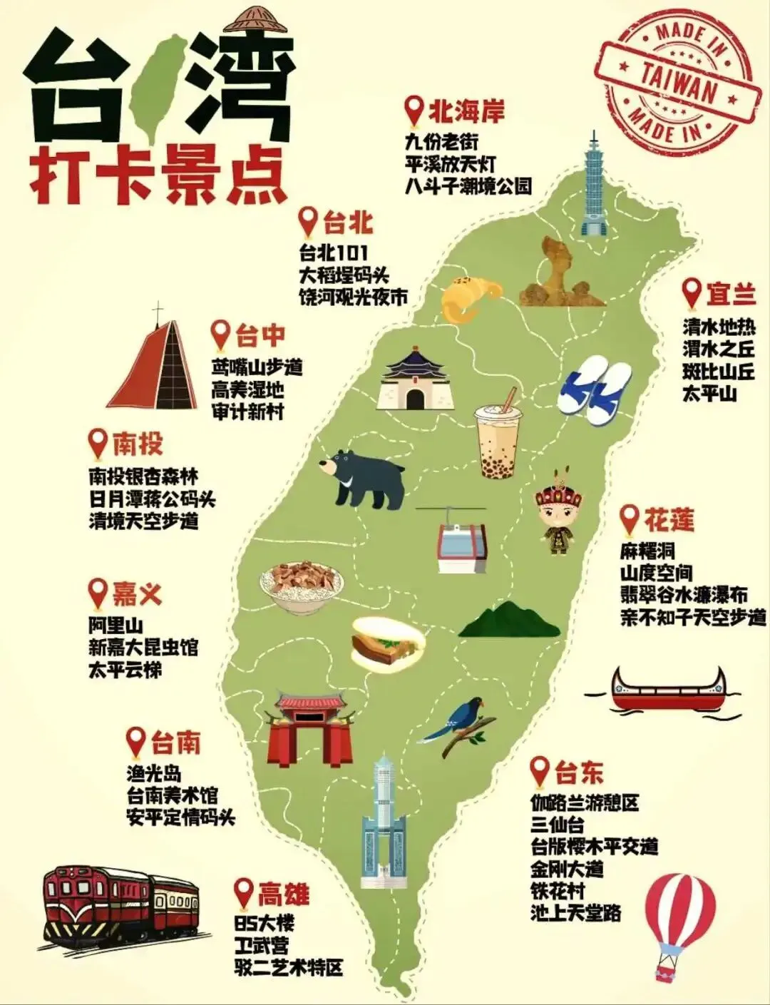 核心打卡地:台北故宫博物院、垦丁海滩、阿里山、日月潭