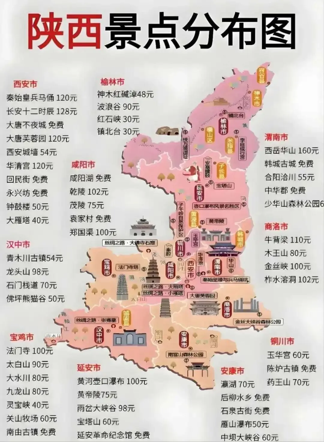 核心打卡地:西安秦始皇陵博物院、渭南华山风景区、大雁塔、西安城墙景区