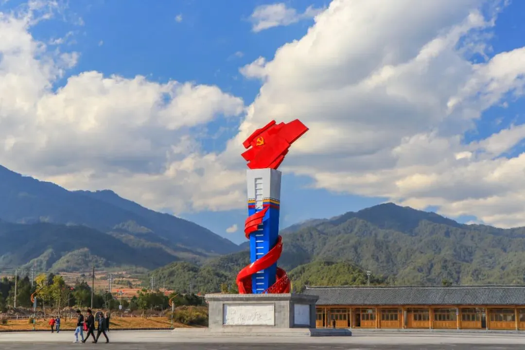 勐福村位于团田乡是地震后杨善洲老书记亲自设计、规划、带领重建的寨子,整村为井字形排列,“四横九纵”布局,民居井然有序,村民“日出而作、日落而息”的“田园牧歌”生活场景随处可见。
