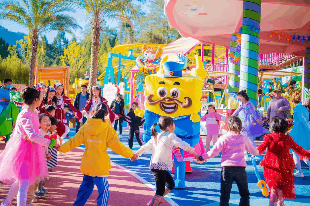 华侨城欢乐新天地景区以“欢乐人文旅游”为主题,以打造“滇西时尚潮流商业新地标”为目标,集吃、住、行、游、购、娱于一身,由“梦幻腾冲大剧院、秘境森林乐园、滇西特色主题商街、温泉度假酒店群”等业态组成。