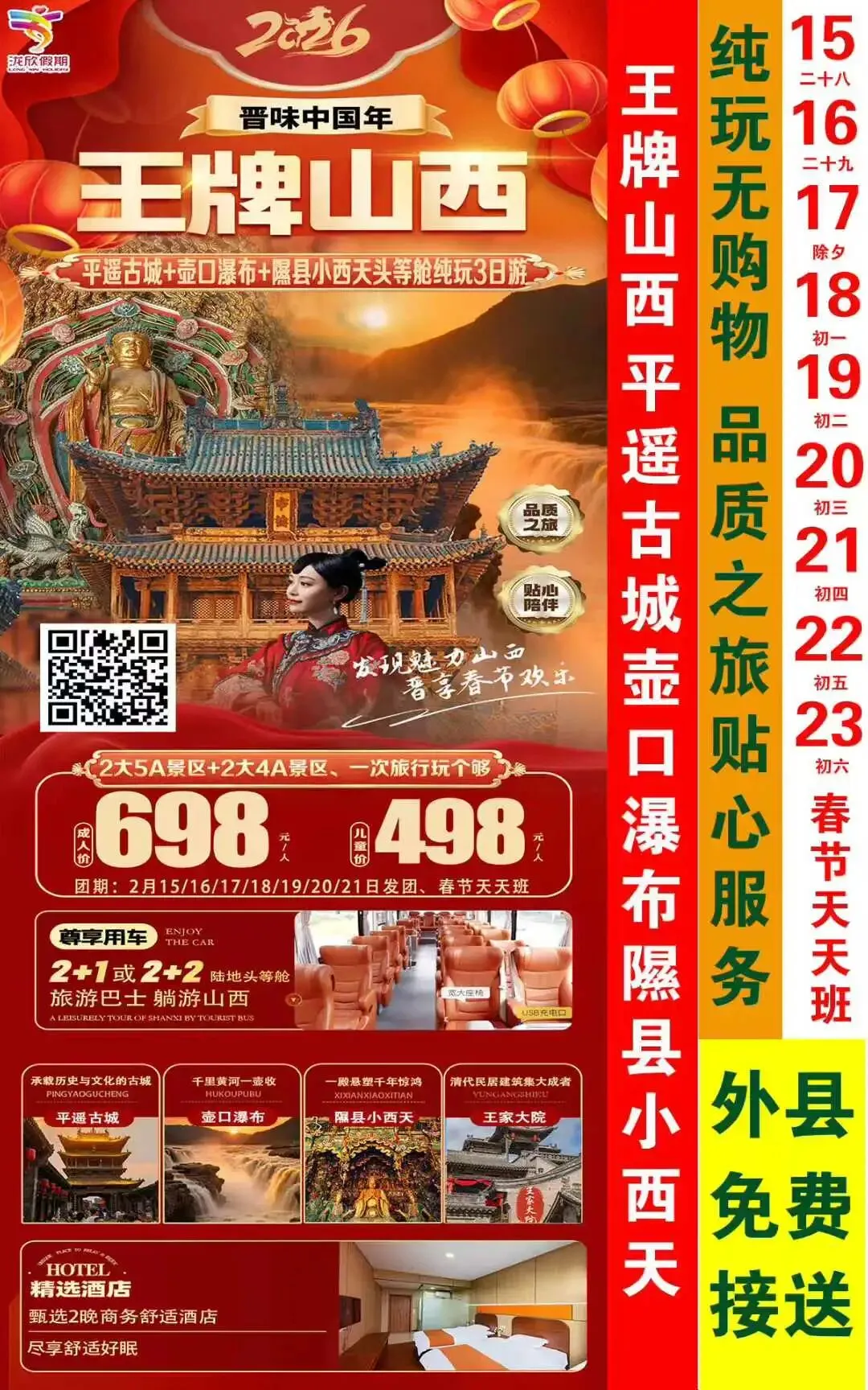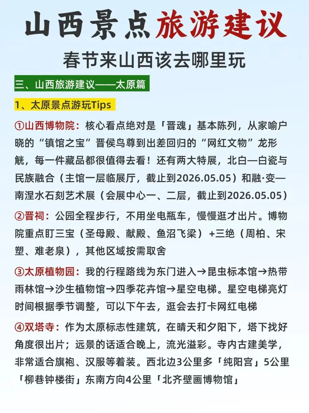 您现在的位置是:首页 > 国内旅游目的推荐 > 正文 国内旅游目的推荐 山西景点推荐!2026年春节最新版! admin2026年02月15日 16:27:05国内旅游目的推荐7 山西景点推荐!2026年春节最新版!山西景点推荐!2026年春节最新版!#山西旅游 #春节去哪玩 #这里是山西 #山西好风光 #旅行图文激励计划 转载请说明来源于"旅荐网",部分内容转载自网络,如有侵权请联系qlwl@foxmail.com删除 本文地址:https://www.15386.cn/post/108319.html 上一篇 广东推出“票根经济”住宿及景区优惠|早安广东 下一篇 老君山景区内索道旁500米超美星空房民宿 相关文章 父母去旅游,这个攻略不看你一定后悔的 被J人男友做的武汉旅游攻略惊艳到了 开封旅游攻略三天两夜 2026年新疆旅游包车深度测评:从路线适配到服务细节的选品避坑 长三角世界级都市圈旅游发展战略咨询报告 “人工智能+文化和旅游”应用试点申报 重庆 4 天 3 晚经典旅游攻略,收藏这篇,轻松玩转山城精华,不绕路、不踩坑! 《春节旅游安全白皮书》重磅首发 桂林阳朔三天两夜旅游攻略 新婚夫妇庐山蜜月旅行实测指南:8家旅行社深度对比与选择策略 发表评论 取消回复 评论列表 这篇文章还没有收到评论,赶紧来抢沙发吧~