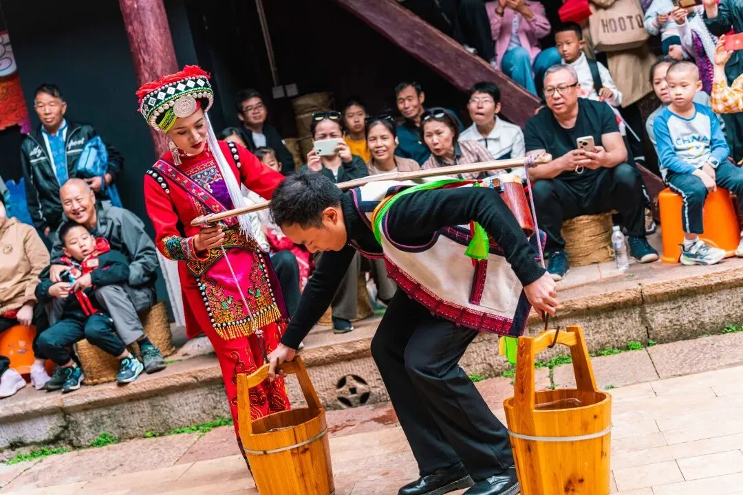 想感受最原生态的彝家浪漫与快乐?“阿细婚俗表演”绝对不容错过。每一个环节都延续着阿细人代代相传的婚恋习俗,藏着“勤劳善良为美,真心相待为贵”的民族智慧。现场还会邀请游客沉浸式参与,亲身感受这份跨越千年的淳朴浪漫,在欢声笑语中,收获满满的快乐与感动。