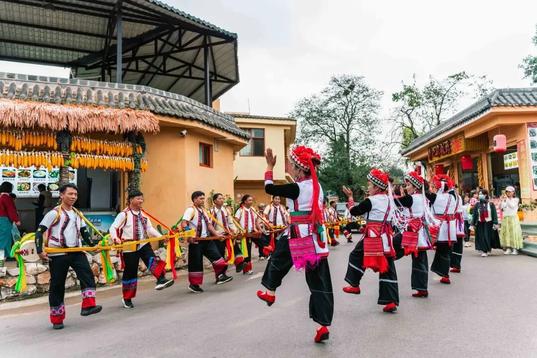 新春佳节,小镇还将开启“踏歌巡游”活动。身着五彩彝装的村民们,,沿着古村的石板路缓缓前行,歌声与笑声在村落间回荡。游客可跟随巡游队伍,穿梭在古村巷陌,欣赏墙上的阿细民俗壁画,感受古村的烟火气息与新春的喜庆氛围,让快乐在一路欢歌中蔓延。