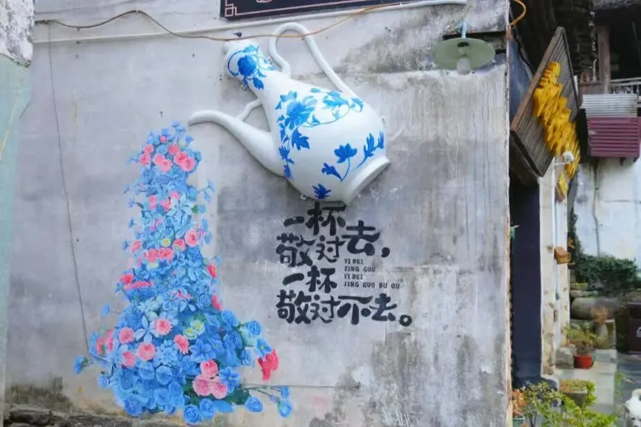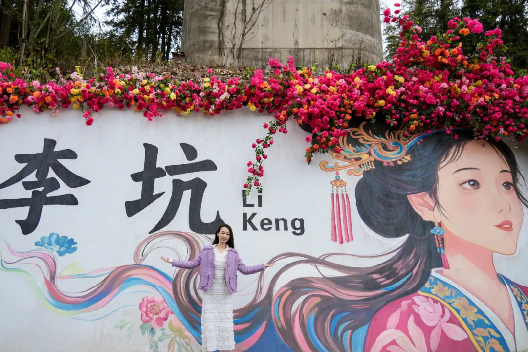 如果说流动的溪水是李坑的“旧梦”,那么新春亮相的壁画和花墙,则是古村为游客编织的“新诗”。