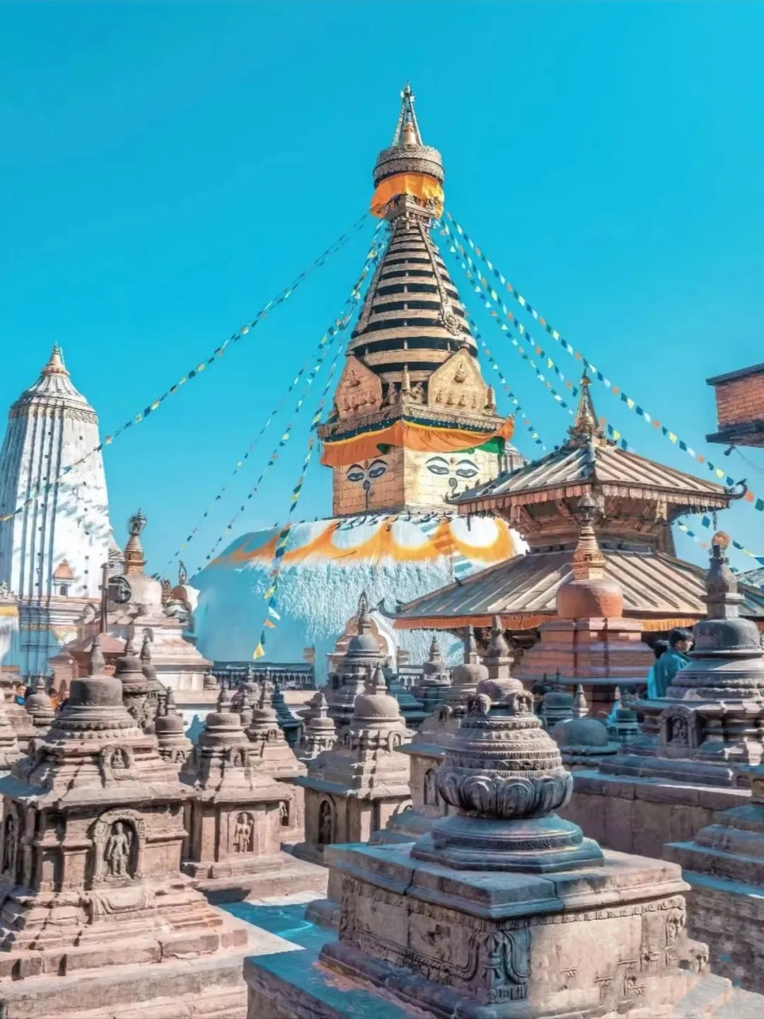 相信这几日的游玩让您既兴奋又略感疲惫。抵达加都后,我们将参观佛教历史圣地——斯瓦扬布纳特神庙,又名猴庙。加德满都是一座拥有 1200 多年历史的古城,拥有众多历史古迹、寺院庙宇。斯瓦扬布纳特寺的舍利塔底座四面绘有眼睛图案,故被称为“四眼天神庙”,它历史极为悠久,距今已有 2000 多年,是世界上最古老的佛教圣迹之一。这座庙宇位于可俯瞰加德满都的小山丘上,信徒们常围着佛塔顺时针转圈祈福。