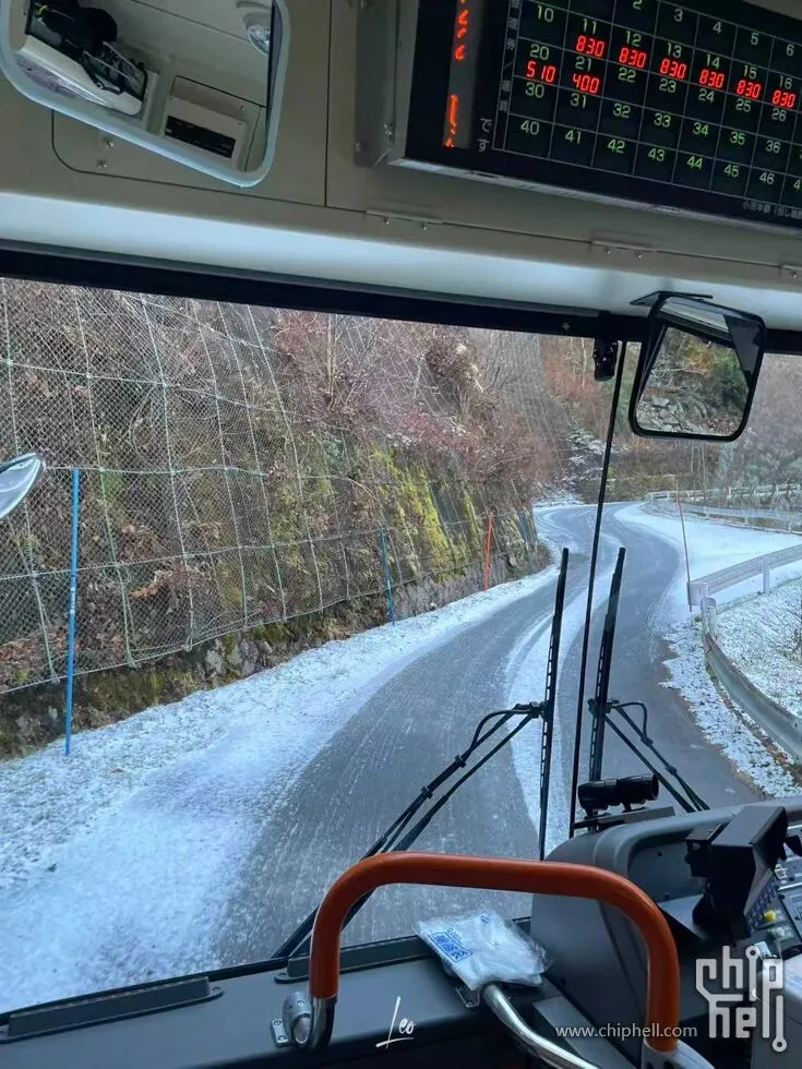 上车以后总共不超过10个人,其中一半还是缆车站工作人员离雪山越来越近,兴奋。司机开着公交在积雪的盘山公路飞驰,太牛了。