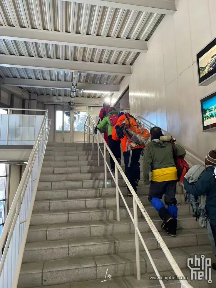 9点10分不到,下缆车。9点20分穿戴冰爪、上厕所、登山书什么的准备工作,出发。