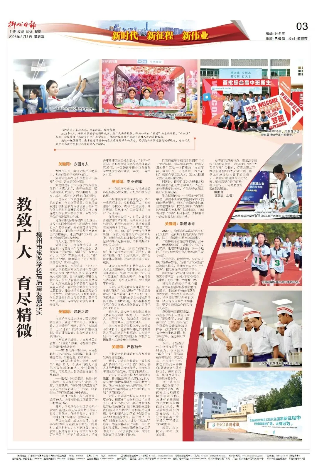 您现在的位置是:首页 > 国内旅游目的推荐 > 正文 国内旅游目的推荐 媒体聚焦|柳州市旅游学校办学成果亮相市级媒体 admin2026年02月15日 16:54:18国内旅游目的推荐9 媒体聚焦|柳州市旅游学校办学成果亮相市级媒体媒体聚焦 近日,我校十四五办学成果和以礼仪教育为载体、深入推进校园文明建设的经验做法先后登上柳州日报、柳州电视台《尚学堂》栏目,向社会展现我校育人成效,传递校园正能量。2026年2月5日《柳州日报》第三版 已关注 关注 重播 分享 赞 视频详情 2026年2月9日柳州电视台《尚学堂》旧岁已展千重锦,新年再进百尺竿。2026 年,愿我们乘势而上,如骏马奔腾,在职业教育的沃土上续写荣光!精彩推荐左右滑动查看更多文图来源丨宣传科编 辑丨林子萱校 对丨曾子毫、黄景龙审 编丨庾江帆 转载请说明来源于"旅荐网",部分内容转载自网络,如有侵权请联系qlwl@foxmail.com删除 本文地址:https://www.15386.cn/post/108467.html 上一篇 于调整平遥古城景点、3D灯光秀时间的通告 下一篇 关于2026年春节假期东兴国门口岸景区道路交通管制的通告 相关文章 刚买完机票就降价?2026 最全出行攻略:退差价 + 选座 + 新航线,直接省出半趟! 扬州春日旅游攻略 | 让你不虚此行! 三位一体报考指南 | 欢迎报考浙江工商大学旅游与城乡规划学学院 杭州旅游景点TOP榜!杭州春季旅游必看杭州春季旅游必看攻略 想去开封旅游的看过来,完整景点和攻略 强烈建议!4月江浙沪自驾游攻略,这6条路线美景无限 杭州旅行全攻略 甘南环线|西北小众旅游攻略~ 河南:关于征集“人工智能+文化和旅游”应用场景的公告 香港澳门4天3晚旅游详细攻略 发表评论 取消回复 评论列表 这篇文章还没有收到评论,赶紧来抢沙发吧~