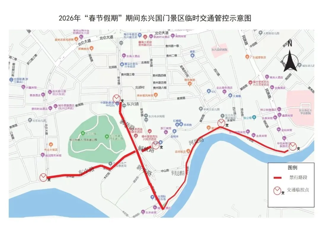 为保障2026年春节假期道路交通畅通和人民群众安全出行,根据《中华人民共和国道路交通安全法》有关规定,将于2026年2月15日至2月23日在东兴国门景区周边道路实施临时交通管制措施。具体事项通告如下: