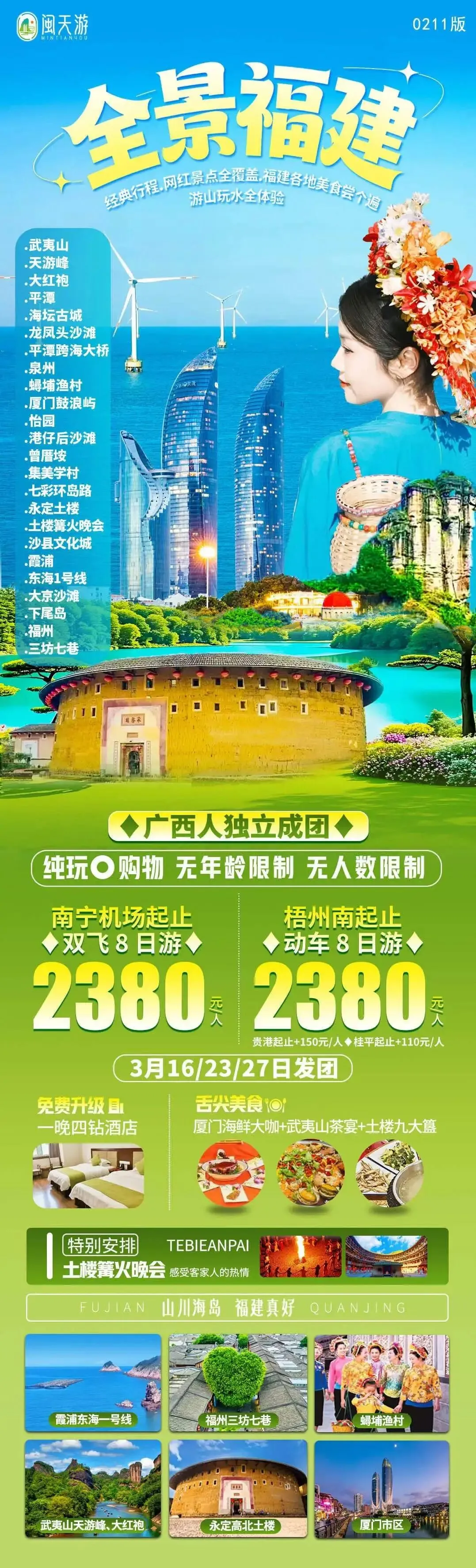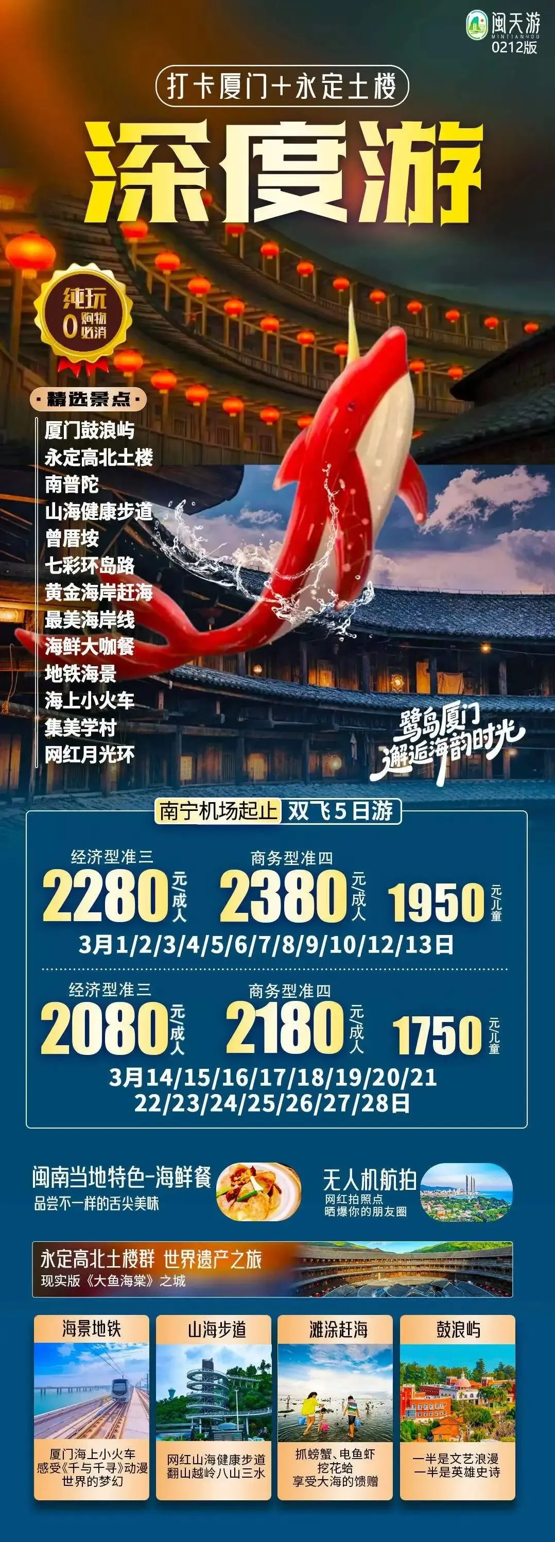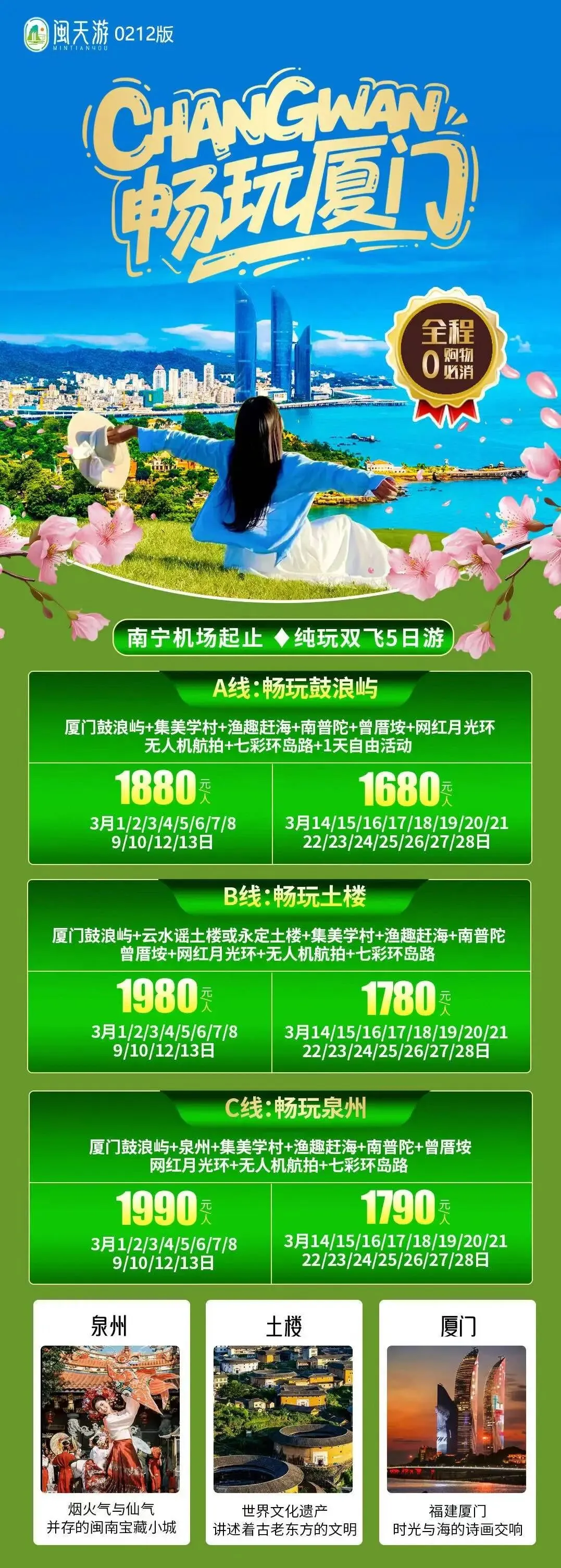 福建、厦门:3月旅游线路汇总(鼓浪屿/泰宁古镇/土楼/曾厝垵/南普陀寺/东山岛/平潭岛...)