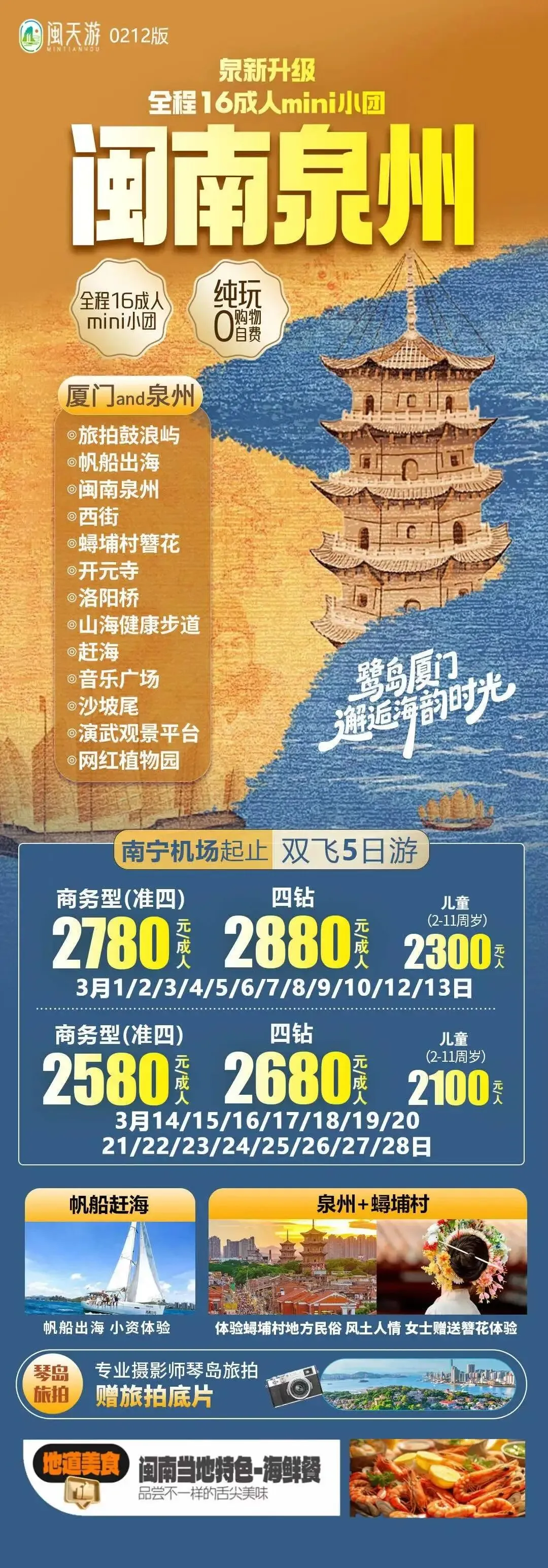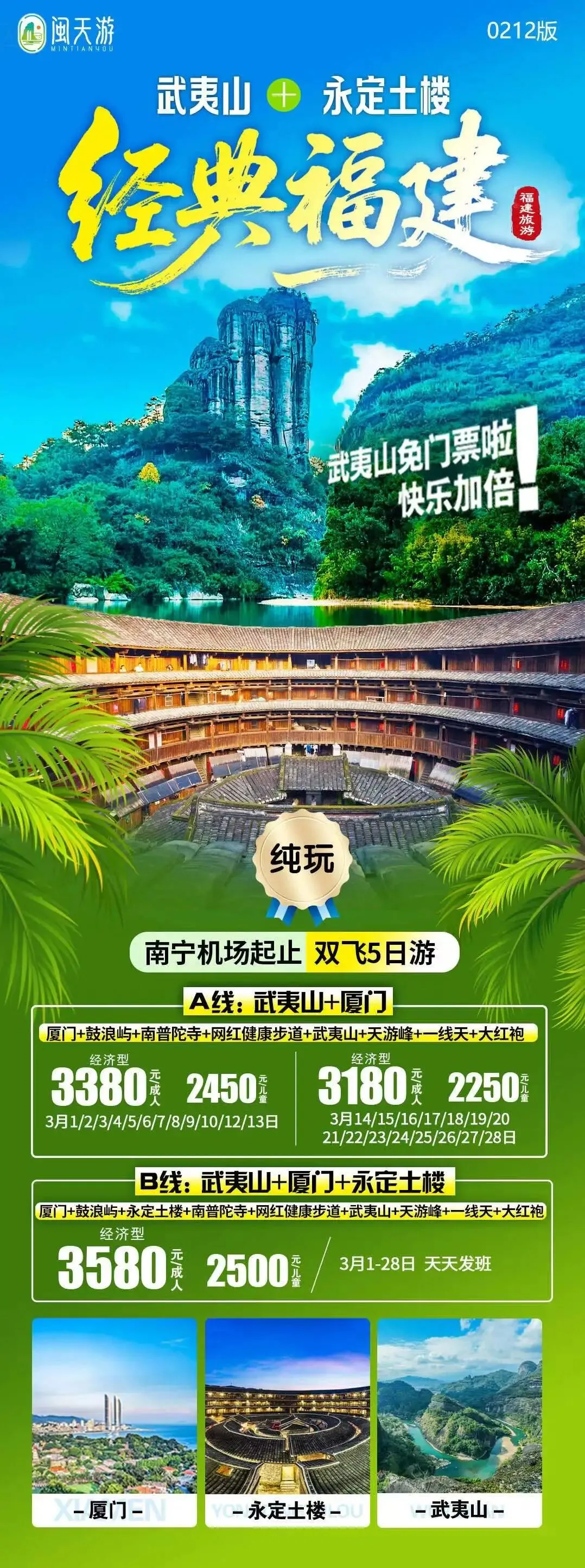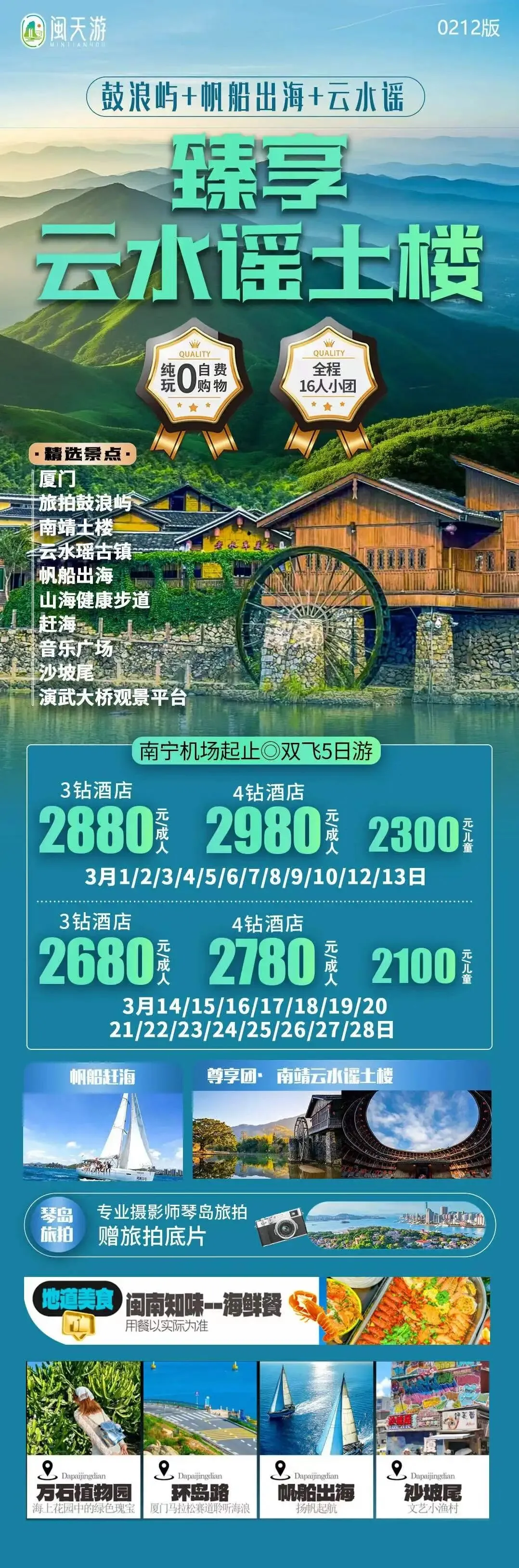 福建、厦门:3月旅游线路汇总(鼓浪屿/泰宁古镇/土楼/曾厝垵/南普陀寺/东山岛/平潭岛...)