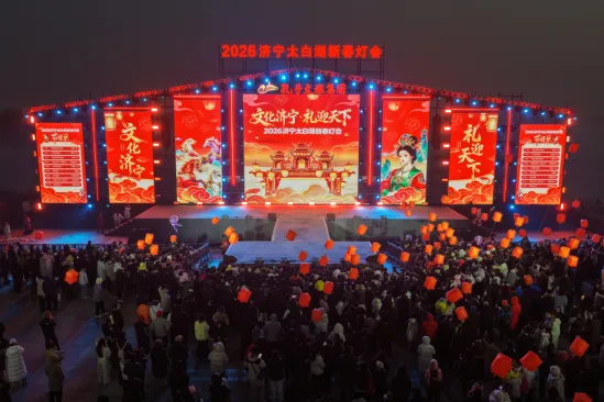 以“文化济宁·礼迎天下”为核心主题,融合济宁孔孟文化、运河文化与民俗文化等元素,打造“运河之都”“骏马奔腾”“龙腾济宁”“孔子讲学”“文成公主”等主题彩灯,通过传统灯艺与现代光影技术深度融合,塑造济宁太白湖春节文旅品牌。