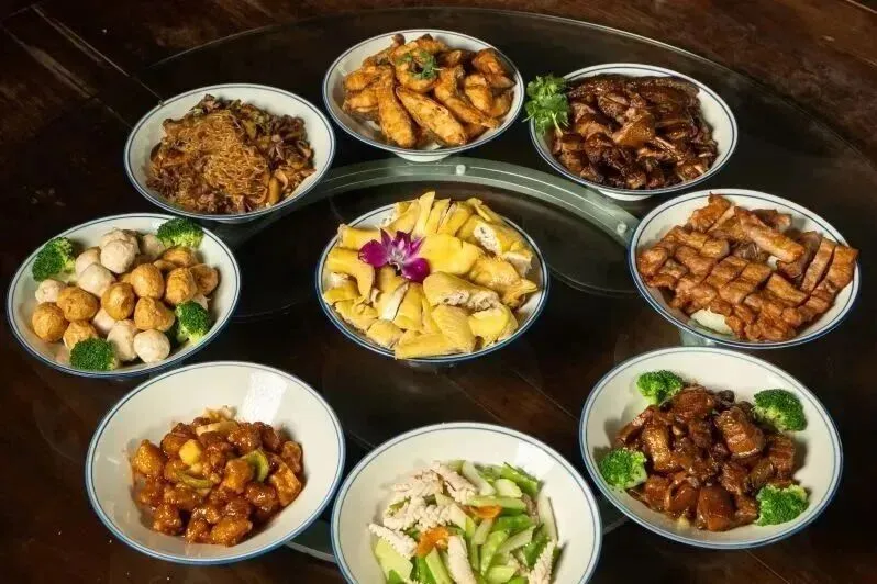 黄金酥丸、客家酿豆腐、秋长八月豆、客家九大碗、客家娘酒、客家咸鸡