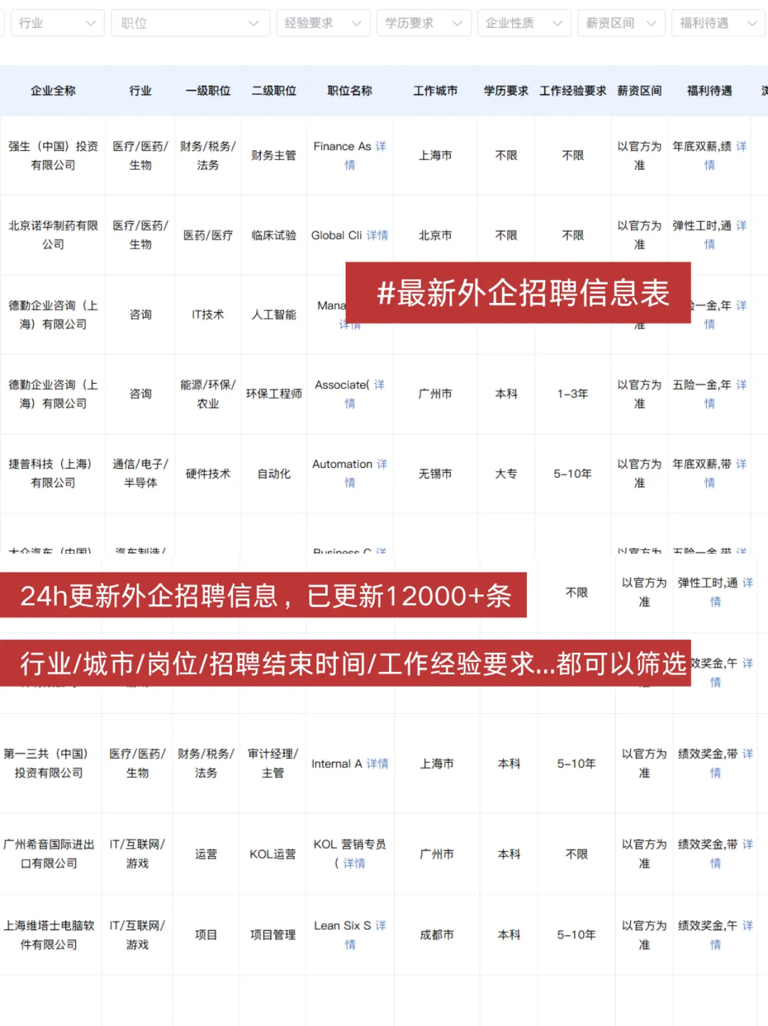 ✅最新外企招聘信息表