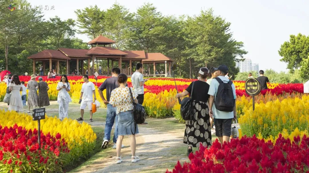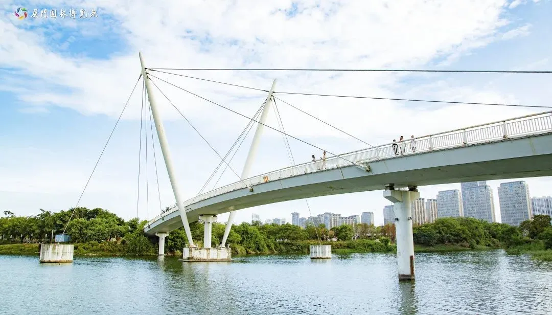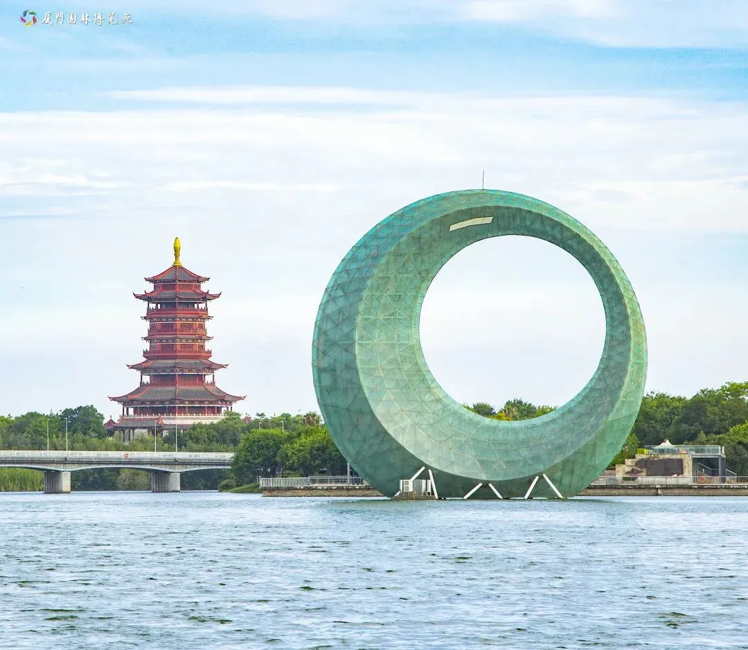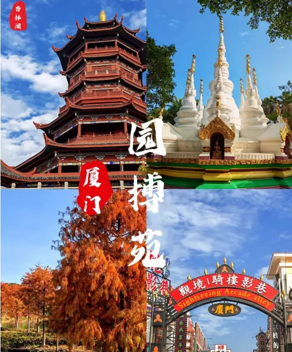 参观【园博苑】,厦门园博苑面积6.76平方公里,其中水域面积占了全园面积的一半以上,是世界上独一无二的水上大观园。园博园以广阔的杏林湾水域为背景,由5个展园岛、4个生态景观岛和两个半岛组成,自然形成多岛结构、众星拱月的园在水上、水在园中的景观特点。园博苑 杏林阁,厦门园博园的大门像两只展翅的白鹭腾空而起,又像两片白色的花瓣,盛开在园博园。作为园博园的标志性建筑之一,园博园大门――花之门将厦门的市鸟白鹭与洁白的花瓣结合在一起,突显了厦门园博园的地域特色,让人进园时就眼前一亮。(景交车,自愿自理)
