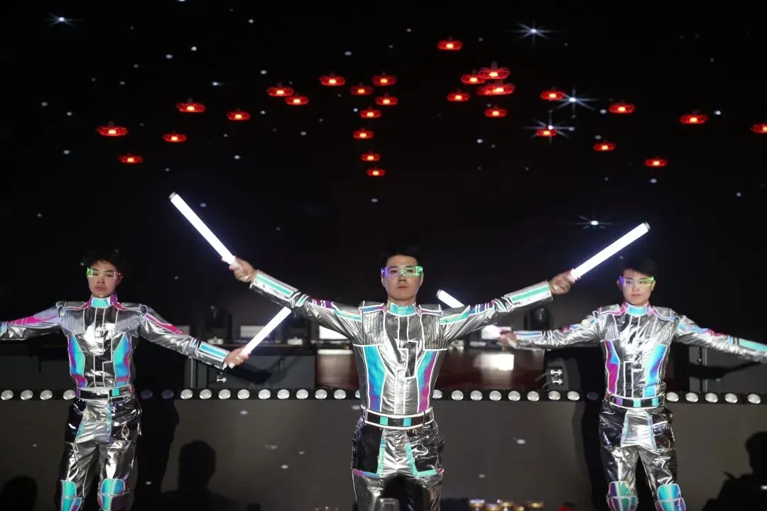 《福马奔腾开门红》点燃了全场气氛,鼓声如雷、舞步翻涌,像奔腾的骏马踏响新春序曲。《回家过大年》用熟悉的旋律和团圆的画面,把游子的心拉回了故乡的灯火里。戏曲《戏韵闹春晚》融合古韵新声,将辉县精神融入太行腔韵,赢得满堂喝彩。歌曲《情满人间》像一条时光的河,流过青春、远方和归来的呼唤,唱出了太行儿女心底最柔软的部分。情景剧《一荤一素》,则成了整场演出最戳中泪点的一刻,当那句“人非少年身,味是故乡浓”响起,爱与时光都在这一刻静静流淌。诗朗诵《百泉赋》,以百泉为魂,用声线的交错和乡音的轻点,把泉水的叮咚与辉县的时代变迁交织成一幅诗意画卷。《你好辉县》,用乡土的旋律唱出了城市的脉动,每一句都是对这片土地的热爱。《马年style》则让舞台瞬间燃了起来,年轻的力量在节奏中爆发,中国风与街舞的融合让人眼前一亮。舞台情景剧《当那一天来临》则以沉静而坚定的力量,展现了共城儿女的家国情怀。无人机室内表演《智通星芒》,用科技的语言描绘未来,光点在空中起舞,像星辰落入人间。舞蹈《踏歌》则把绿水青山搬上舞台,仿佛太行风骨在山川间流转。最后,歌伴舞《奋进新征程》以铿锵的节奏和昂扬的号角,为整场演出画下句点。
