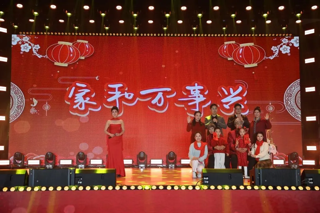 除了精彩的文艺表演,演出还特别设置了互动环节,邀请现场嘉宾参与活动。台下嘉宾热情高涨,积极参与其中,现场气氛热闹喜庆,将演出的欢乐氛围推向了新的高度。