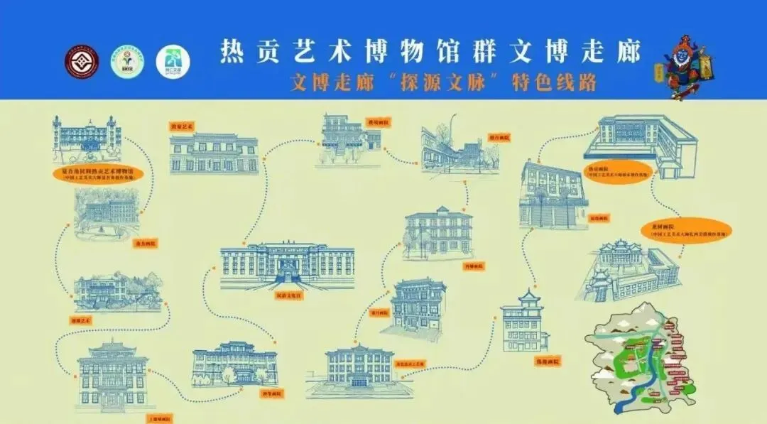 热贡艺术博物馆群文博走廊有效串起热贡艺术民间博物馆(仁俊院)、国家级文化产业示范基地、国家级非物质文化遗产生产性保护示范基地(热贡画院)、国家AAA景区+综合画院(龙树画院)等规模性、标准性画院25家,探索设计“探源文脉·文博走廊”特色线路,形成了“一院一格”文博走廊体验系统。