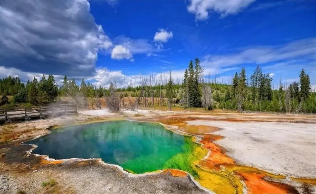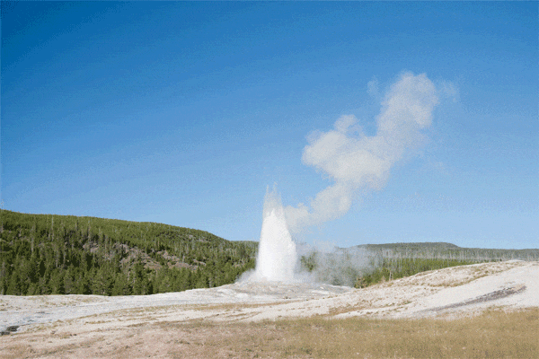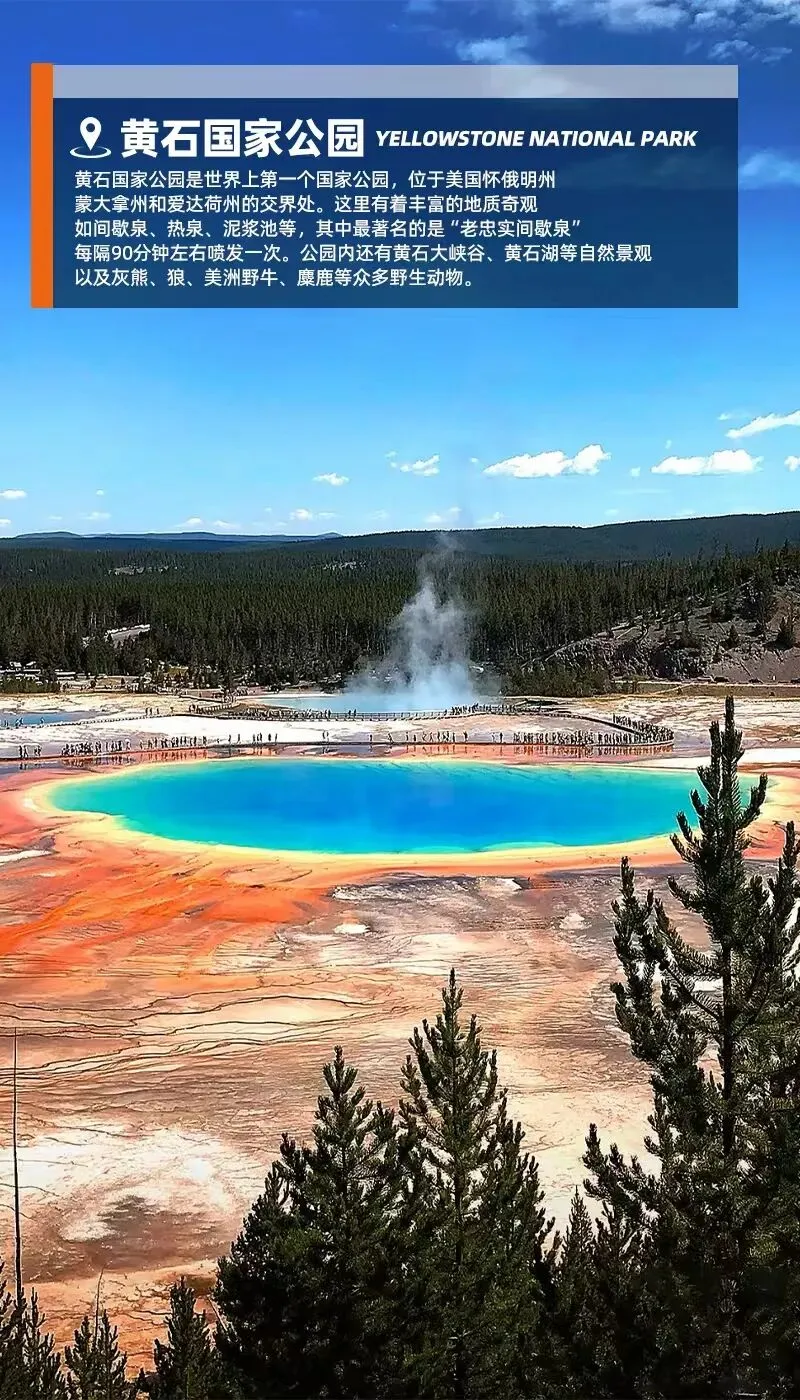 老忠实间歇泉,一座被火山心跳驱动的活态博物馆。全球最著名可预测间歇泉,每隔90分钟喷发一次,水柱高达40-50米。