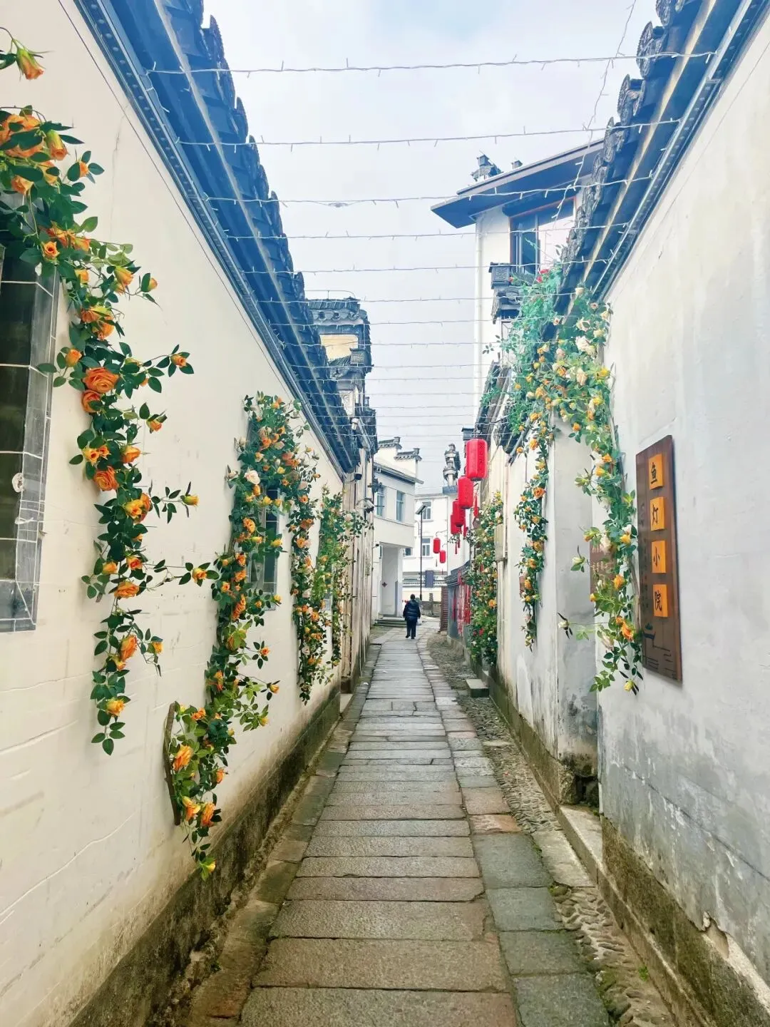 作为绩溪旅游的首张名片,龙川景区的新春装扮早已氛围感拉满!青灰色的马头墙下,一盏盏大红灯笼随风摇曳,与胡氏宗祠的雕花飞檐相映成趣,斑驳的青石板路被红灯笼的暖光浸润,墙角的年桔缀满枝头,将古村落的静谧与新春的热闹完美融合,随手一拍都是氛围感满满的徽州年味大片📸。