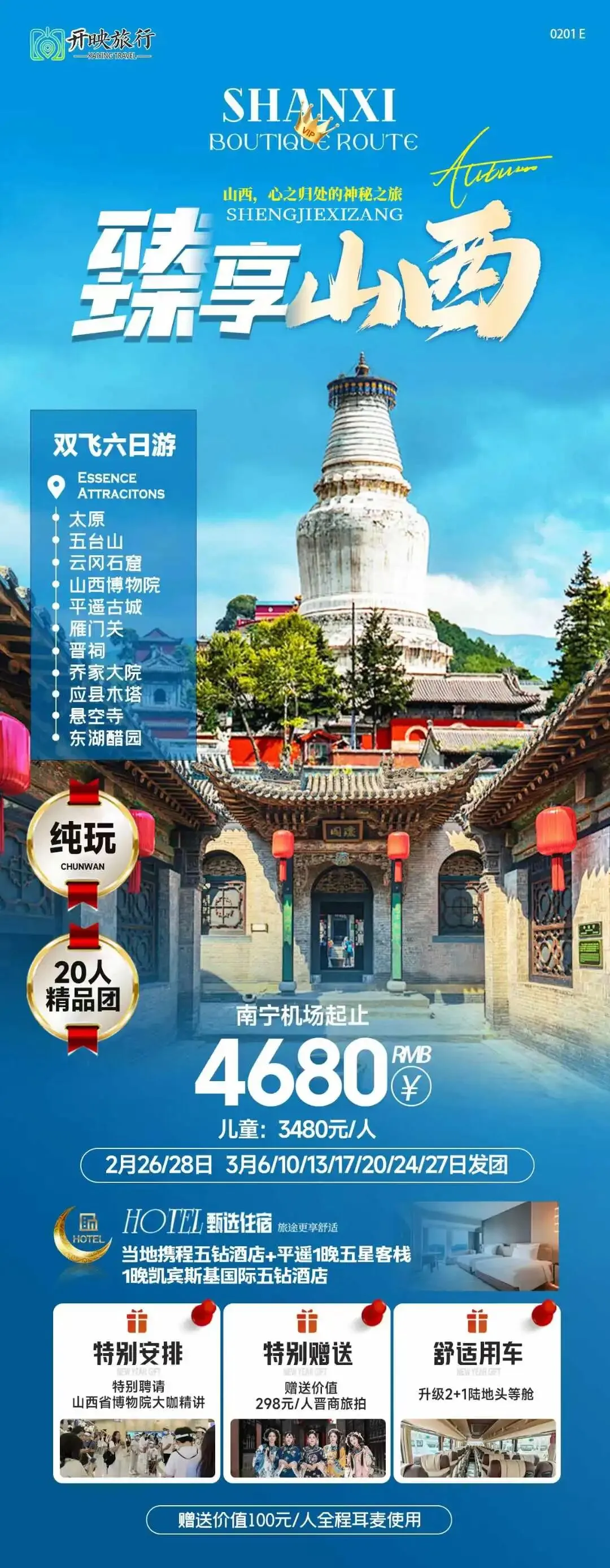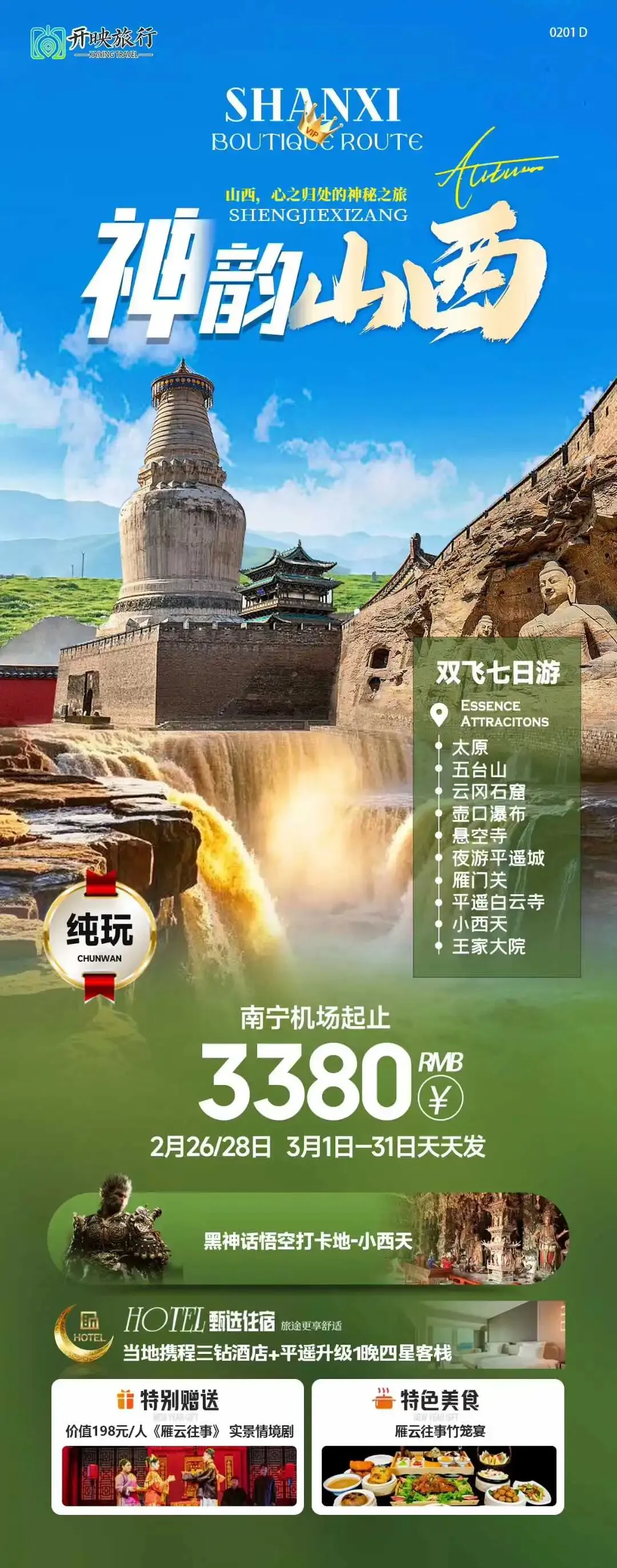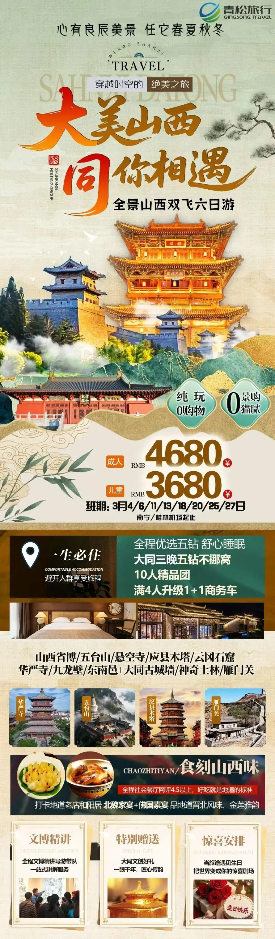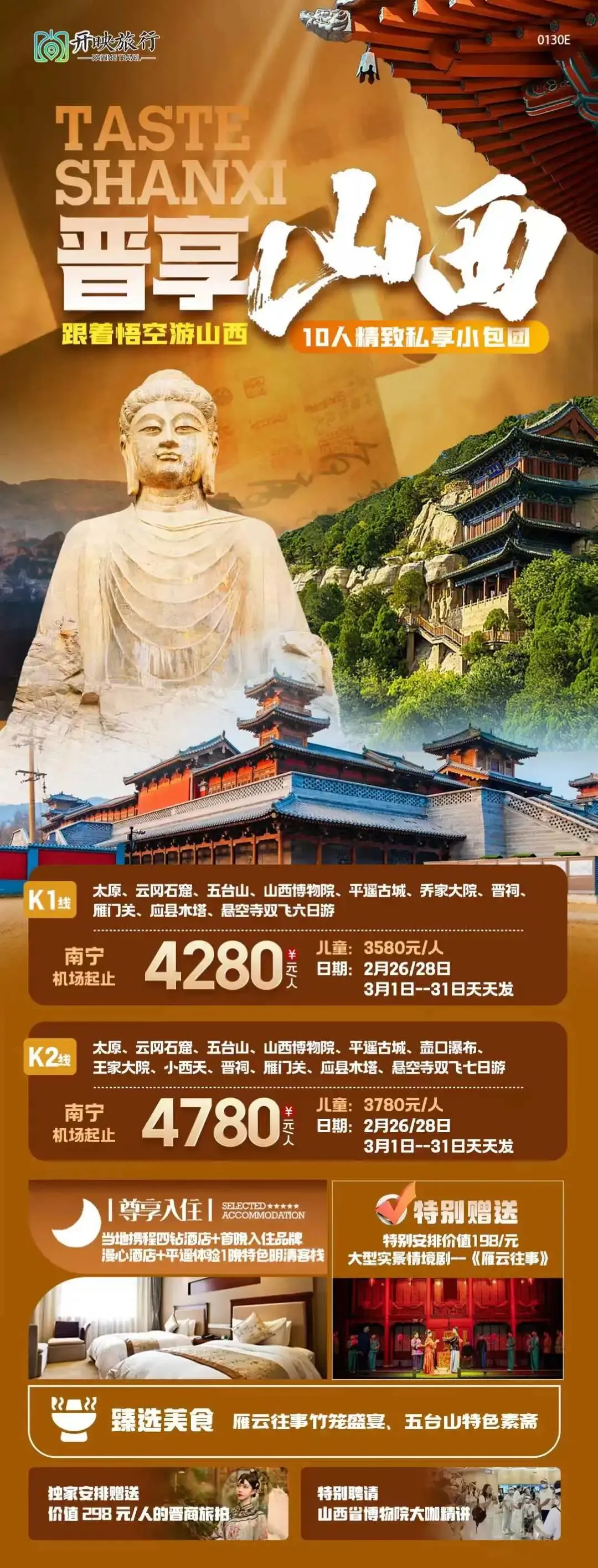 山西:3月旅游线路汇总(平遥古城◎乔家大院◎王家大院◎皇城相府◎波浪谷◎万年冰洞群◎西柏坡◎五台山◎悬空寺◎云冈石窟◎壶口飞瀑)