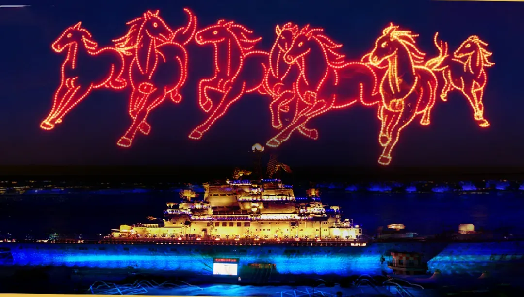 登临退役航空母舰,探秘迷宫般的舱室与高耸的舰岛,触摸钢铁甲板的纹路;到驱逐舰上聆听其劈波斩浪守卫海疆的铁血往事;深入狭长的鱼雷潜艇,在精密仪器间体验水下勇士的别样人生……农历初一至初七,游客除了可以在公园开启航母编队探秘之旅外,还能在夜间欣赏新春无人机光影盛典。届时,千架无人机将以光为笔勾勒万千盛景:从“星河天灯”的灿烂祈愿,到“祥狮献瑞”的灵动祝福,再到山河锦绣、苍穹逐梦的家国盛景,在一幅幅祥瑞图景中体验地道的中式年味。