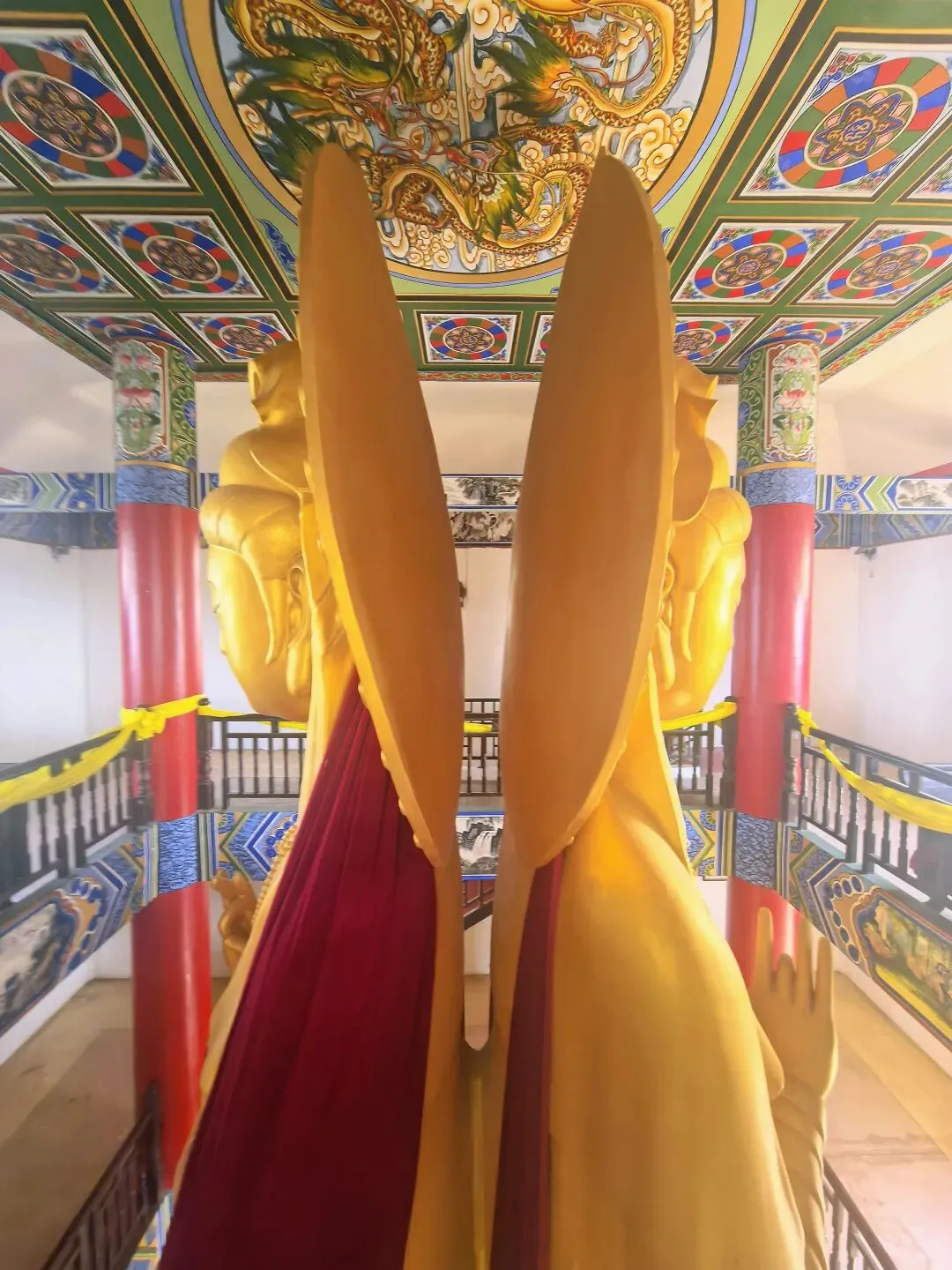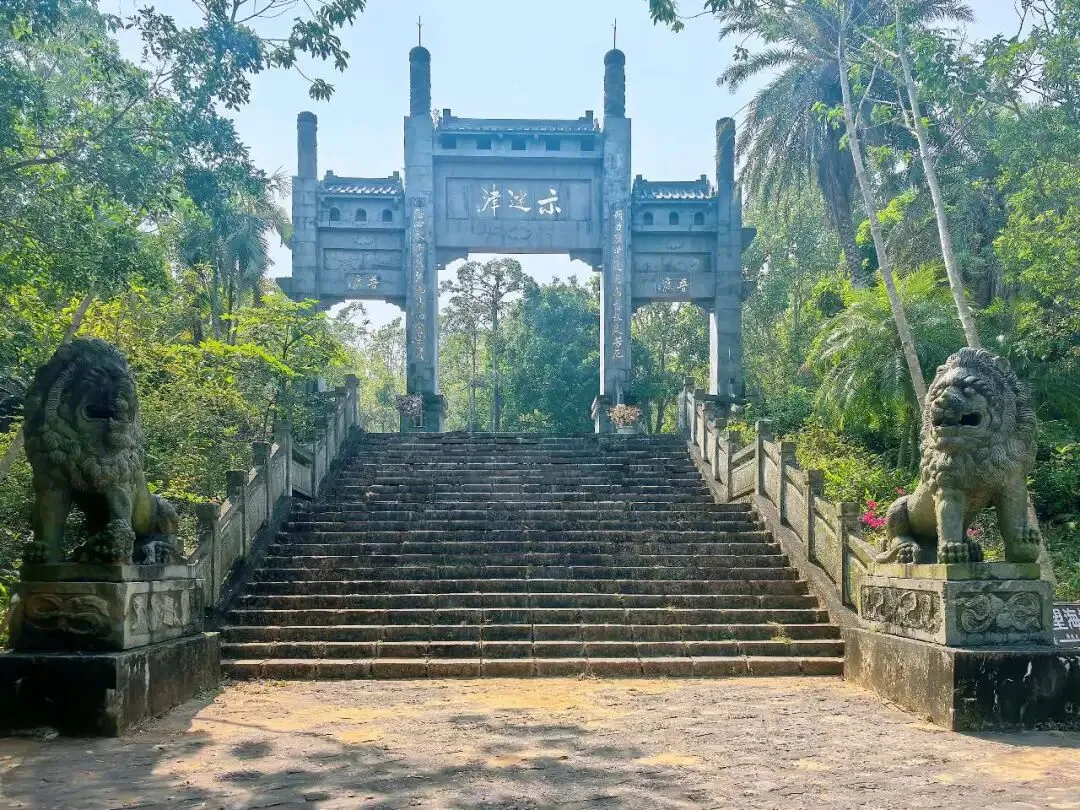 湖光岩景区内最大景点楞严寺已单独行文分享,今天主要说湖区景色和其它景点。望海楼坐落于湖光岩最高点的山顶上,在湖光岩的玛珥湖边建有一座“示迷津”牌坊,牌坊后有一条植有千株菩提树的山路通往望海楼。山顶的望海楼略显寂寞,楼内有石梯通往二楼和三楼,楼内据说有粤西最大最高的室内背靠背观音圣像。望海楼最大的优势大概就是俯瞰玛珥湖全貌,楼下绿地可视为小公园,附近的水池据说是放生池。