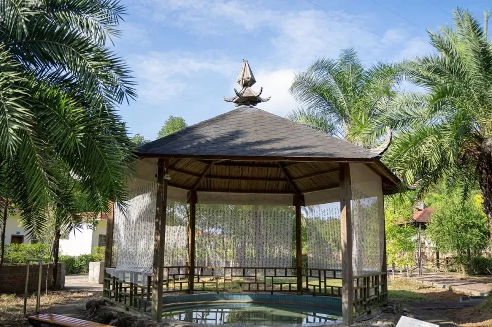 这是一座集温泉嬉水、餐饮娱乐、养生避暑、旅游度假、运动休憩、商住会议为一体的全方位、多功能生态休闲山庄。