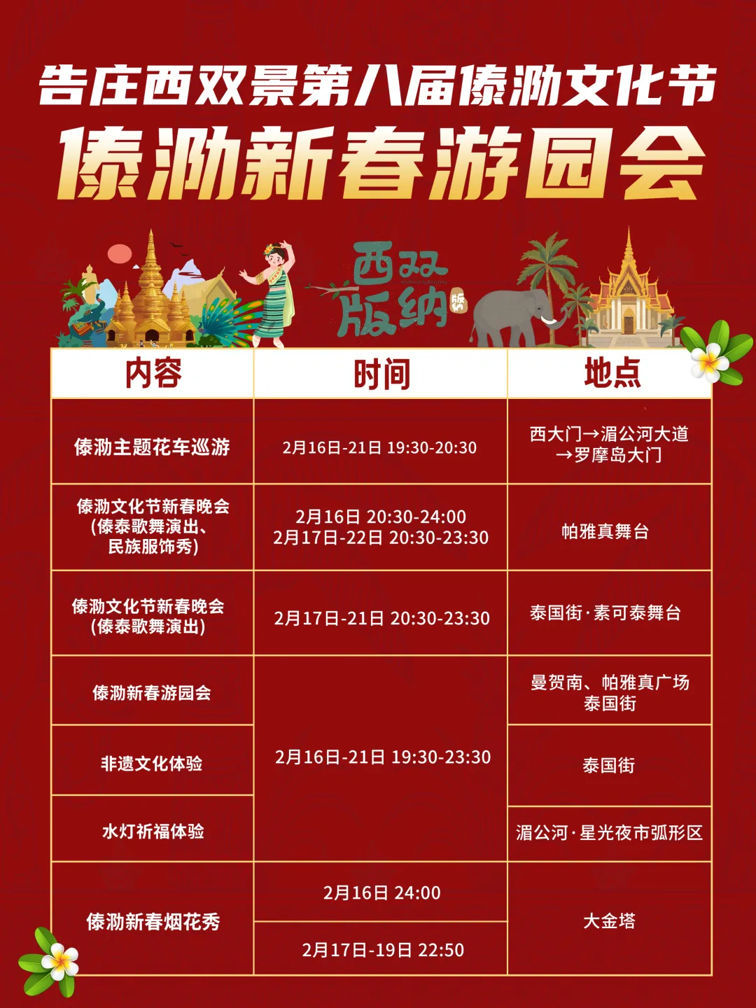✨【告庄西双景第八届傣泐文化节】▪️傣泐花车巡游 ➕ 新春晚会▪️新春游园会|非遗文化体验▪️水灯祈福许愿