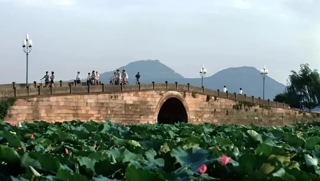 图中这段石拱叫断桥,桥下荷叶一望无际,早上过桥的多是骑车人,细轮胎压在石板上哐啷作响,边上有人扛着相机慢吞吞取景,现在想想,那时的慢,就是旅行的味道。