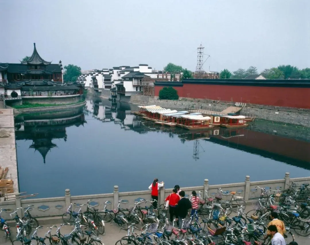这片栏杆前停满的都是二八大杠,图中河道是秦淮河,游船排成一溜,外地人来这儿拍照得先找车位,锁车一拧,钥匙叮当一响,像给旅途按下了开场铃。