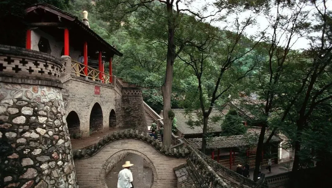 图里这圆洞叫月亮门,墙身是青灰色砖,戴草帽的本地人从门下走过,台阶被人脚磨得发亮,清泉声在树影里叮咚作响,走进去才知道院落一重叠一重。