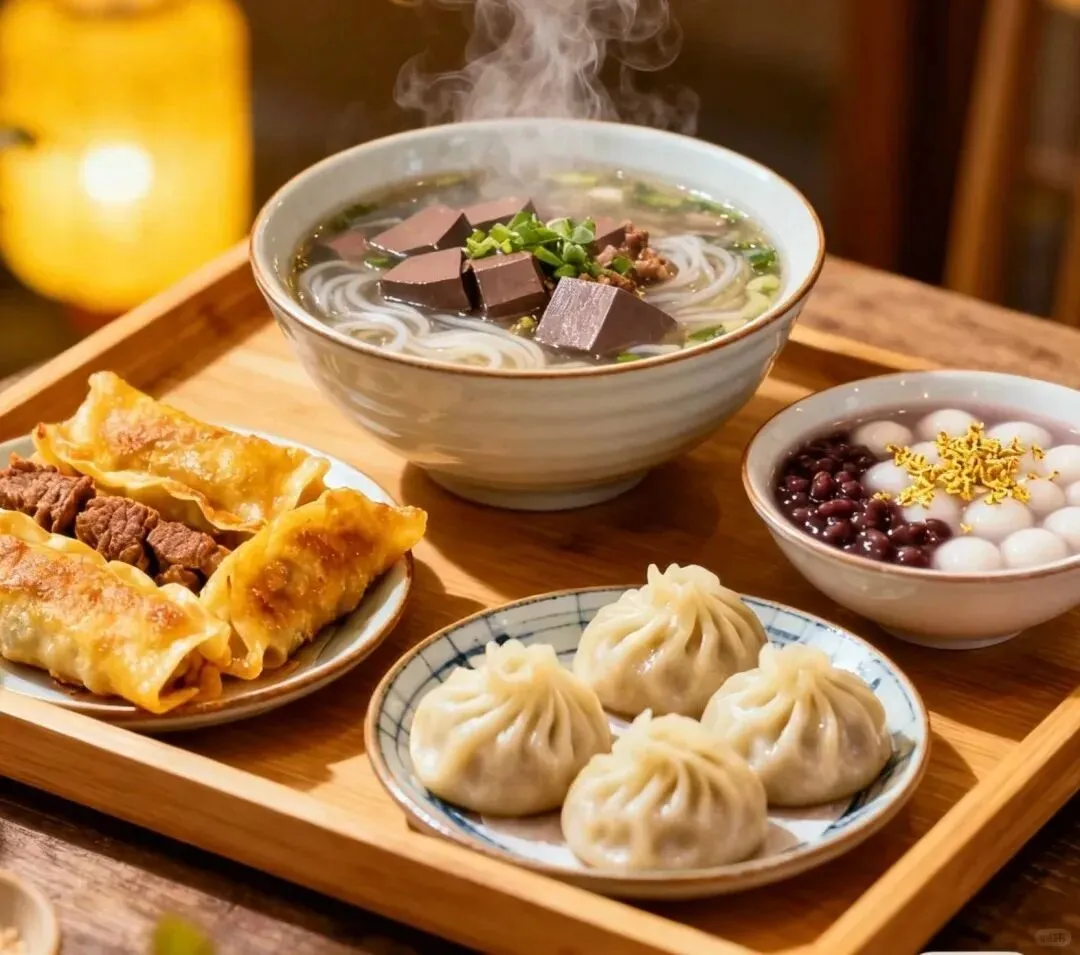小吃推荐:鸭血粉丝、小笼包、如意回卤干、盐水鸭、糕团小点、牛肉锅贴、豆腐脑等...