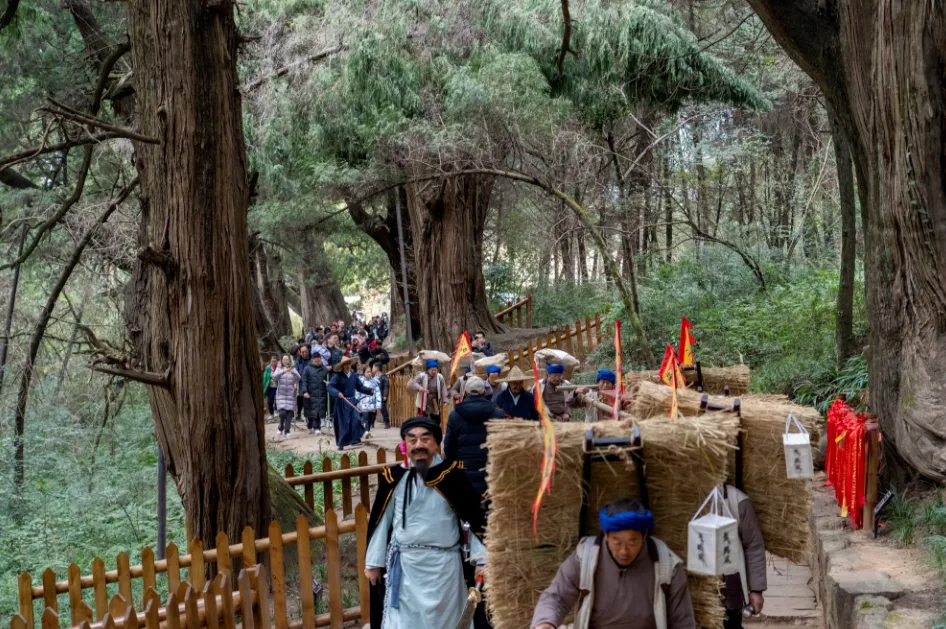 活动内容:《点树交印》《张飞植柏》《蜀道镖运》,三场传统文化表演每日上演,在古柏掩映间重现珍贵历史瞬间,延续蜀道文化的厚重与传奇。