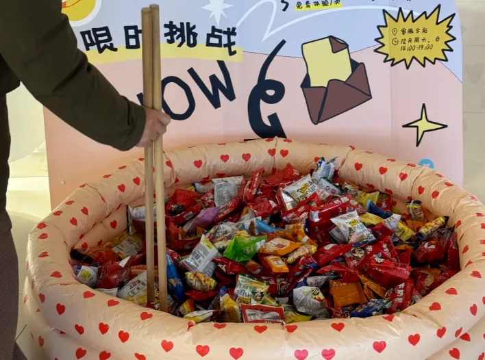 活动内容:一场速度与协作的欢乐角逐!组队上阵,在1分钟内奔赴零食山,用筷子夹起满满心意,满载而归的不仅是零食,更是团队协作的欢声笑语与终极大奖的惊喜。