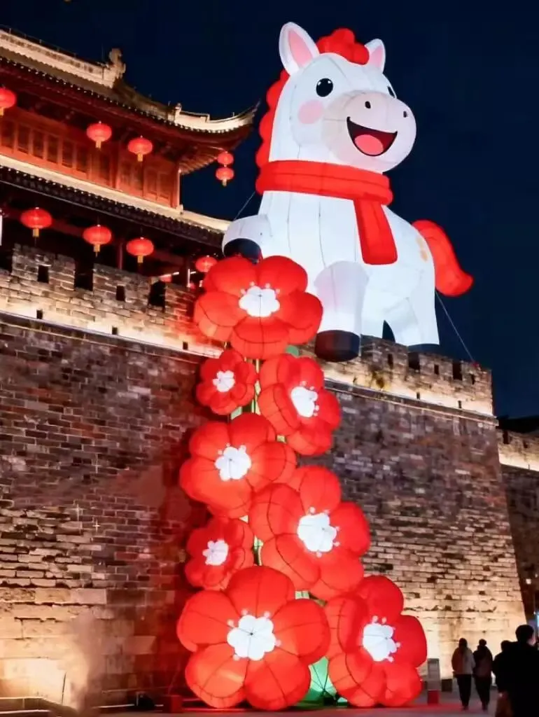 活动内容:东城墙下,12米高的 “古城马” 巍峨矗立,妥妥的「广元第一巨马」!灯光流转间,骏马雄姿挺拔如踏春而来,搭配沿墙摇曳的红灯笼与旌旗,古韵与年味交织拉满。