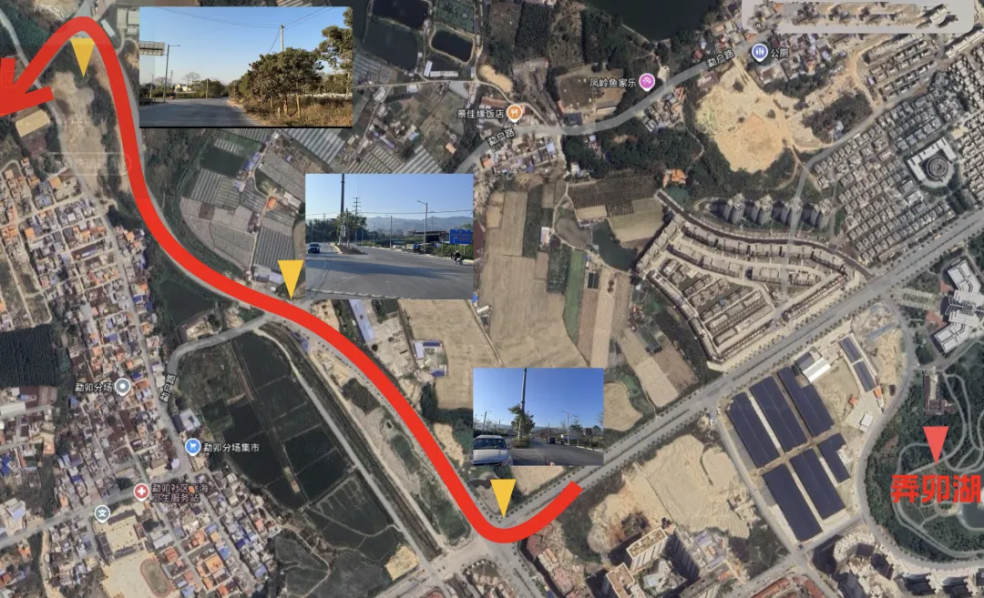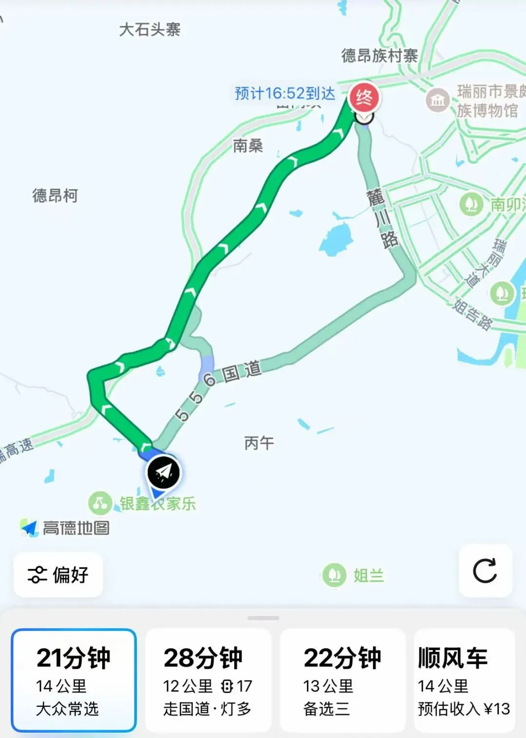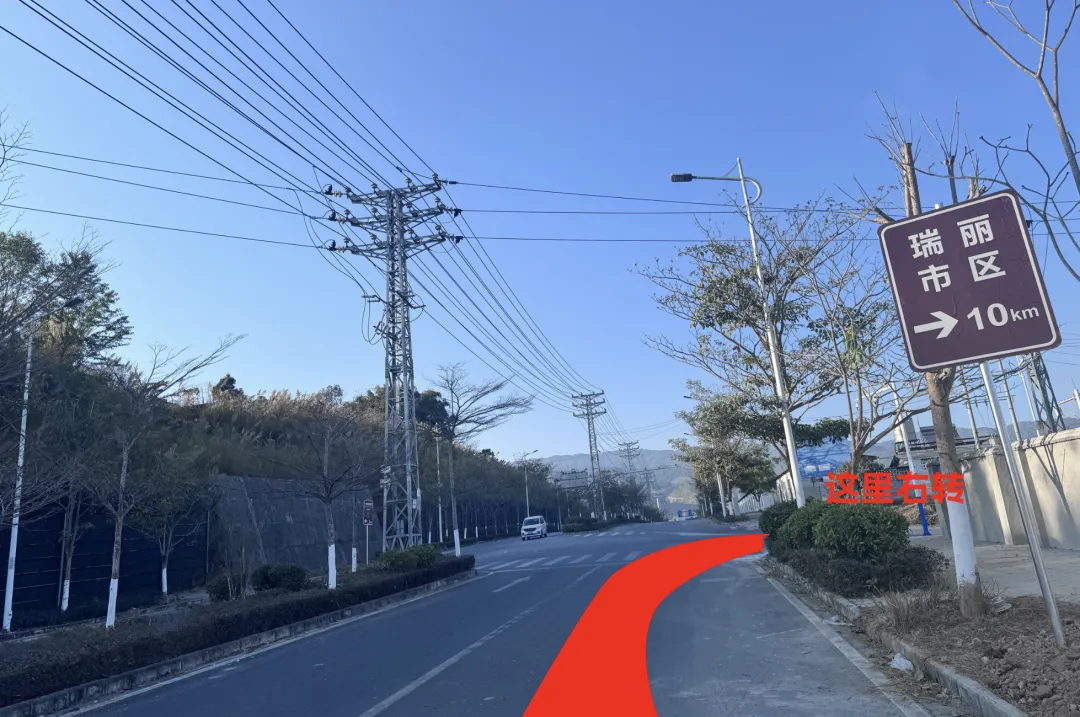 ①“一寨两国”景区→HG6路→工业园区→原高速延长线→乘象路→瑞丽城区。