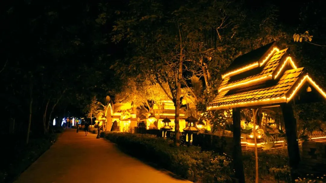 一寨两国景区经过重新提升改造,现已全面开放景区夜游,将景区的开放时间延长至晚上十一点,在这里,您可以欣赏到美轮美奂的灯光秀,仿佛置身于仙境之中;还有美食夜市街区,品尝各种地道美食,让您大饱口福;此外,还可以参与到傣族民族舞蹈的体验中,感受傣族文化的独特魅力。这一系列的活动不仅丰富了游客的游览体验,也为当地带来了更多的经济收益。
